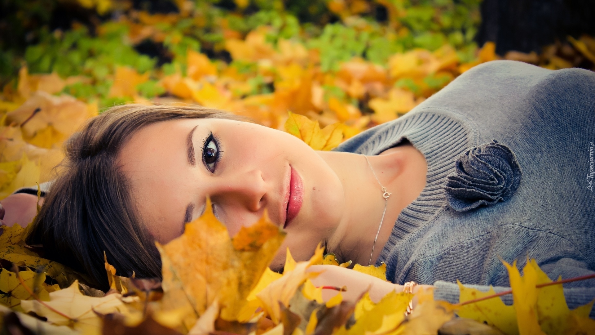 Edytor tapety: Dziewczyna w jesiennych liściach