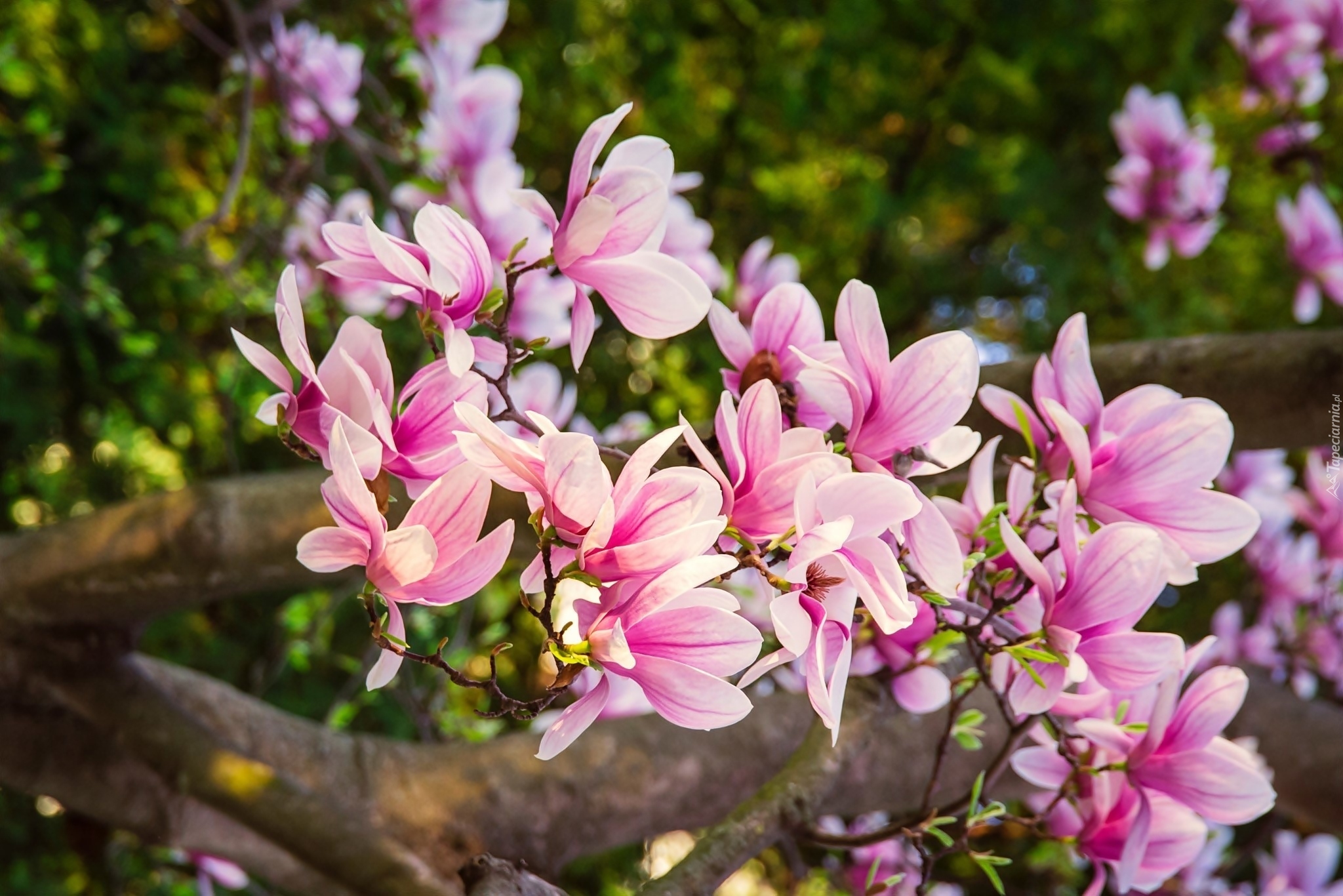 Edytor tapety: Różowe kwiaty magnolii na gałązkach