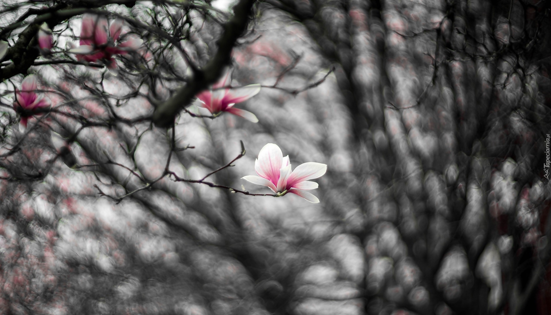 Edytor tapety: Gałązki z bladoróżowymi magnoliami