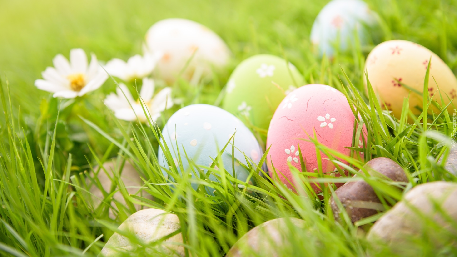 Edytor tapety: Kolorowe pisanki w trawie
