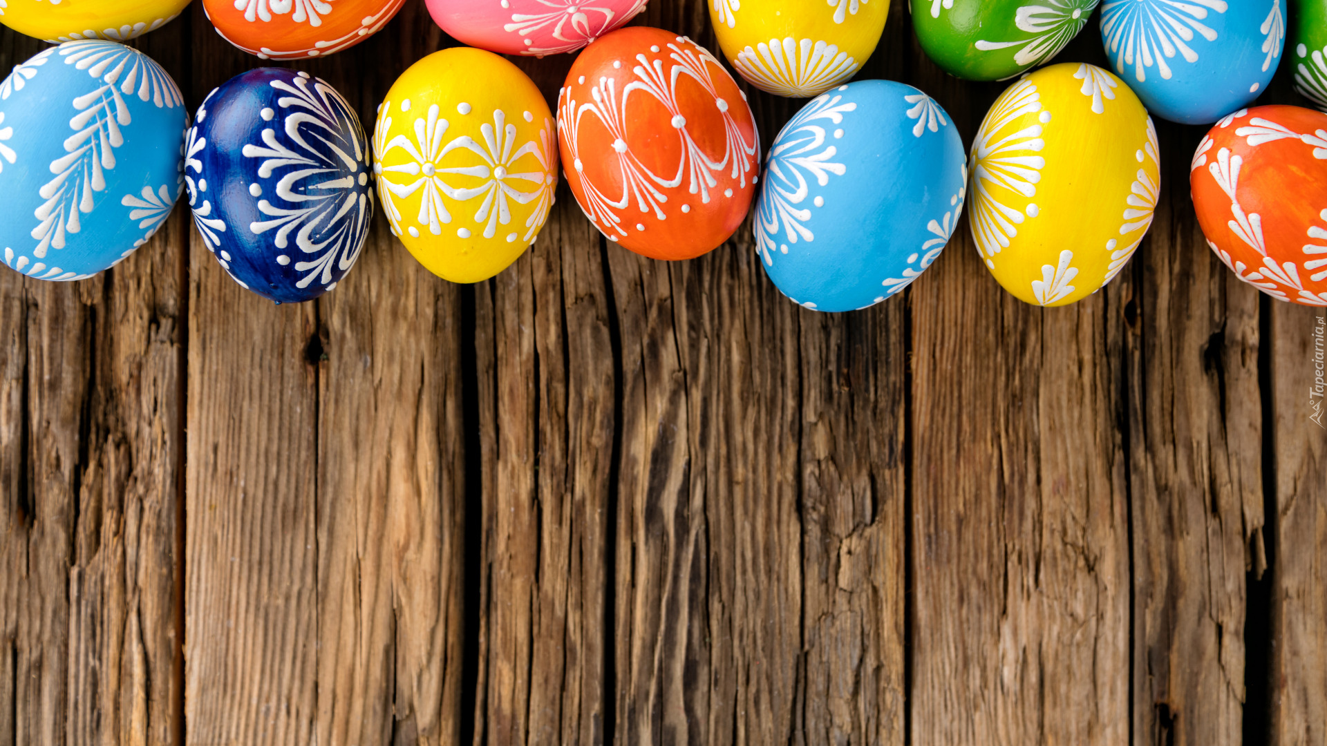 Edytor tapety: Kolorowe pisanki na brązowych deskach