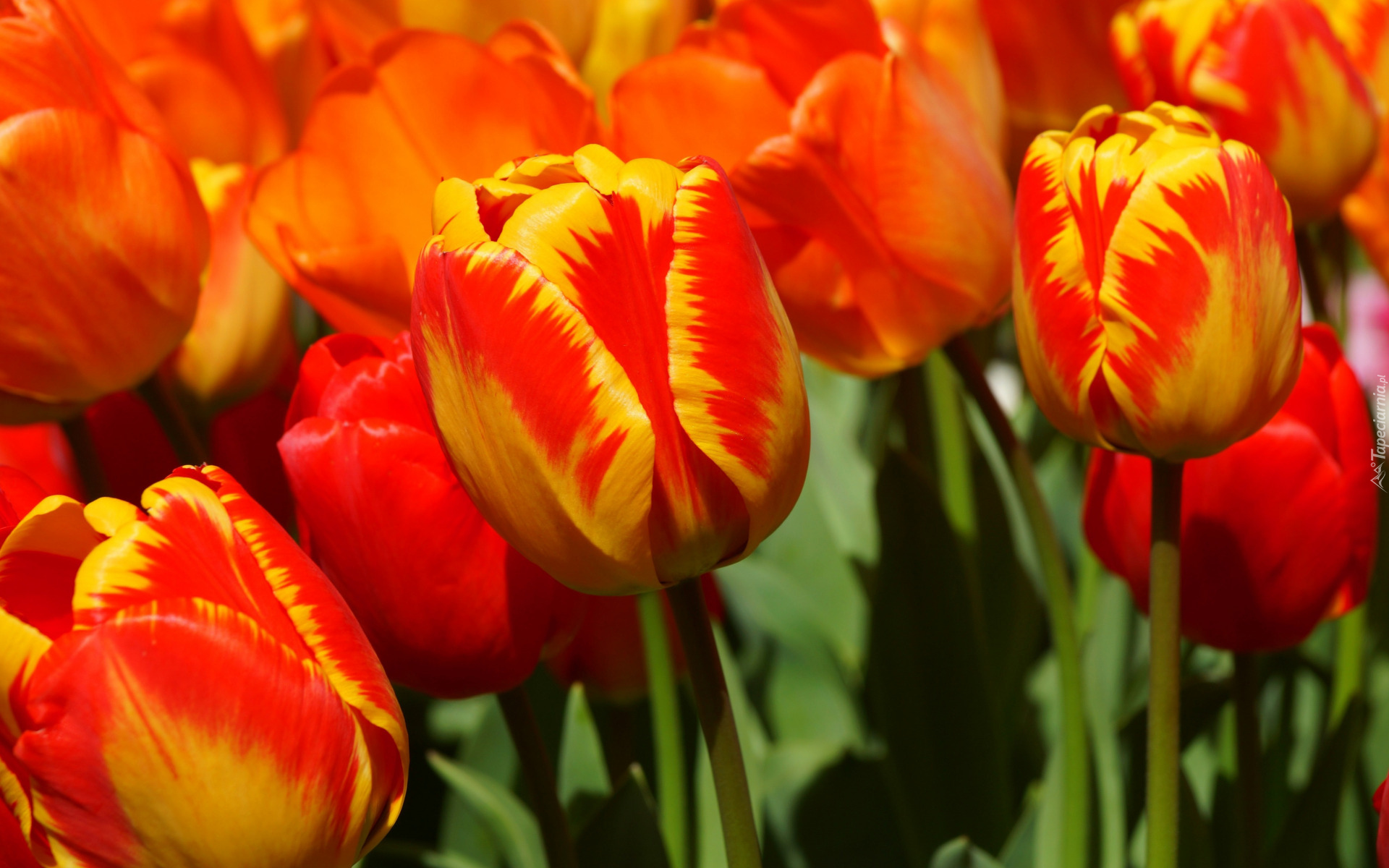 Edytor tapety: Czerwono-żółte tulipany w zbliżeniu