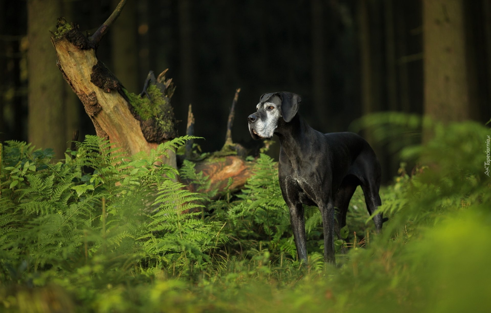Edytor tapety: Dog niemiecki w lesie wśród paproci