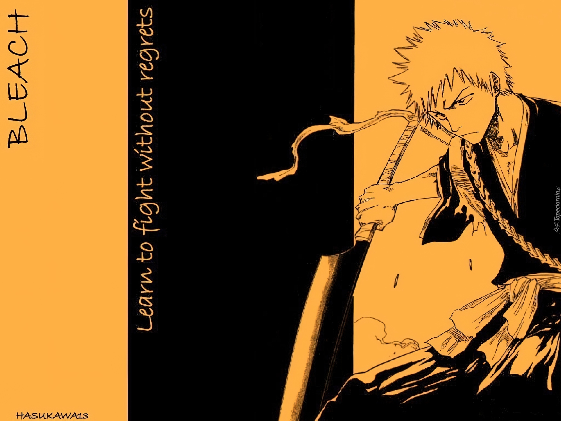 Edytor tapety: Bleach, postać, napisy, człowiek, miecz, rysunek