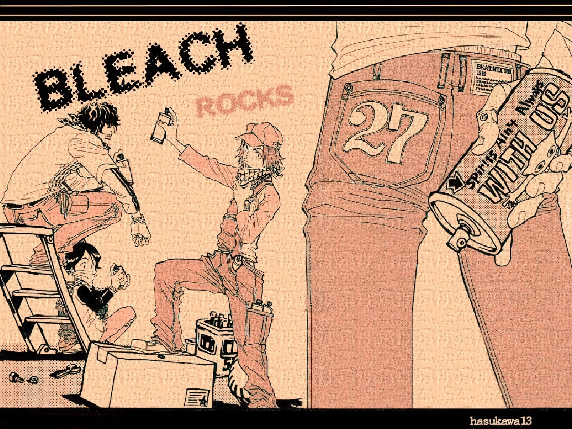 Edytor tapety: Bleach, ludzie, napisy, spray