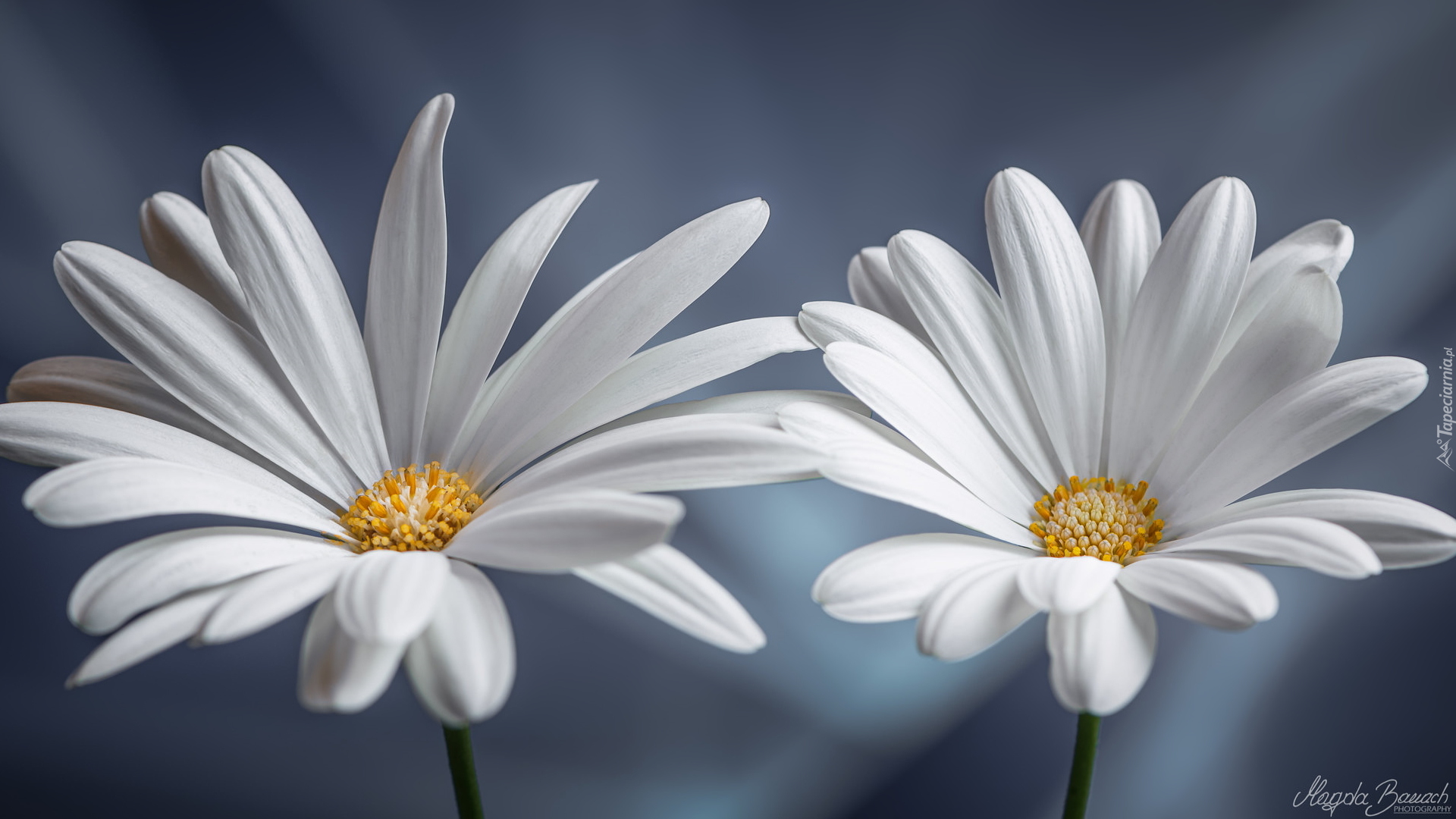 Edytor tapety: Dwie białe stokrotki afrykańskie