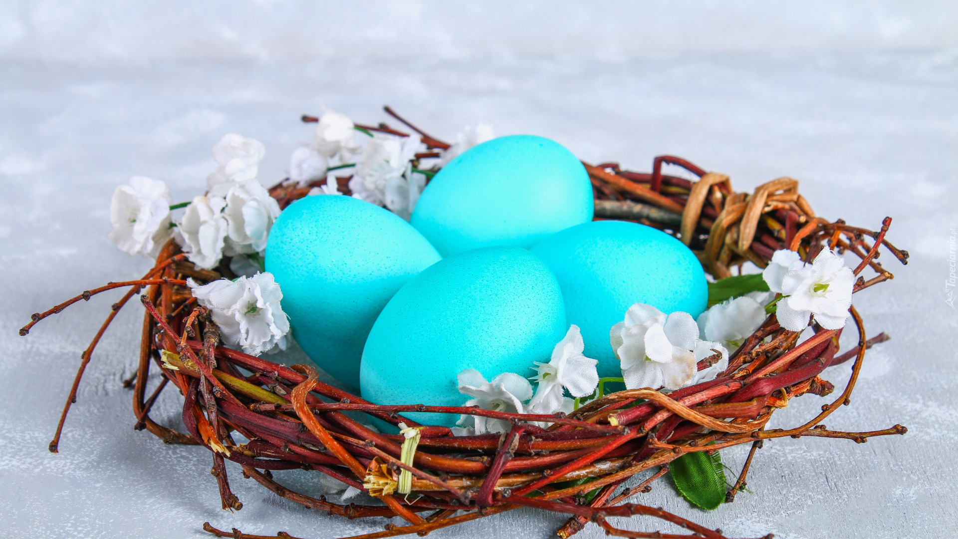 Edytor tapety: Niebieskie pisanki w gniazdku