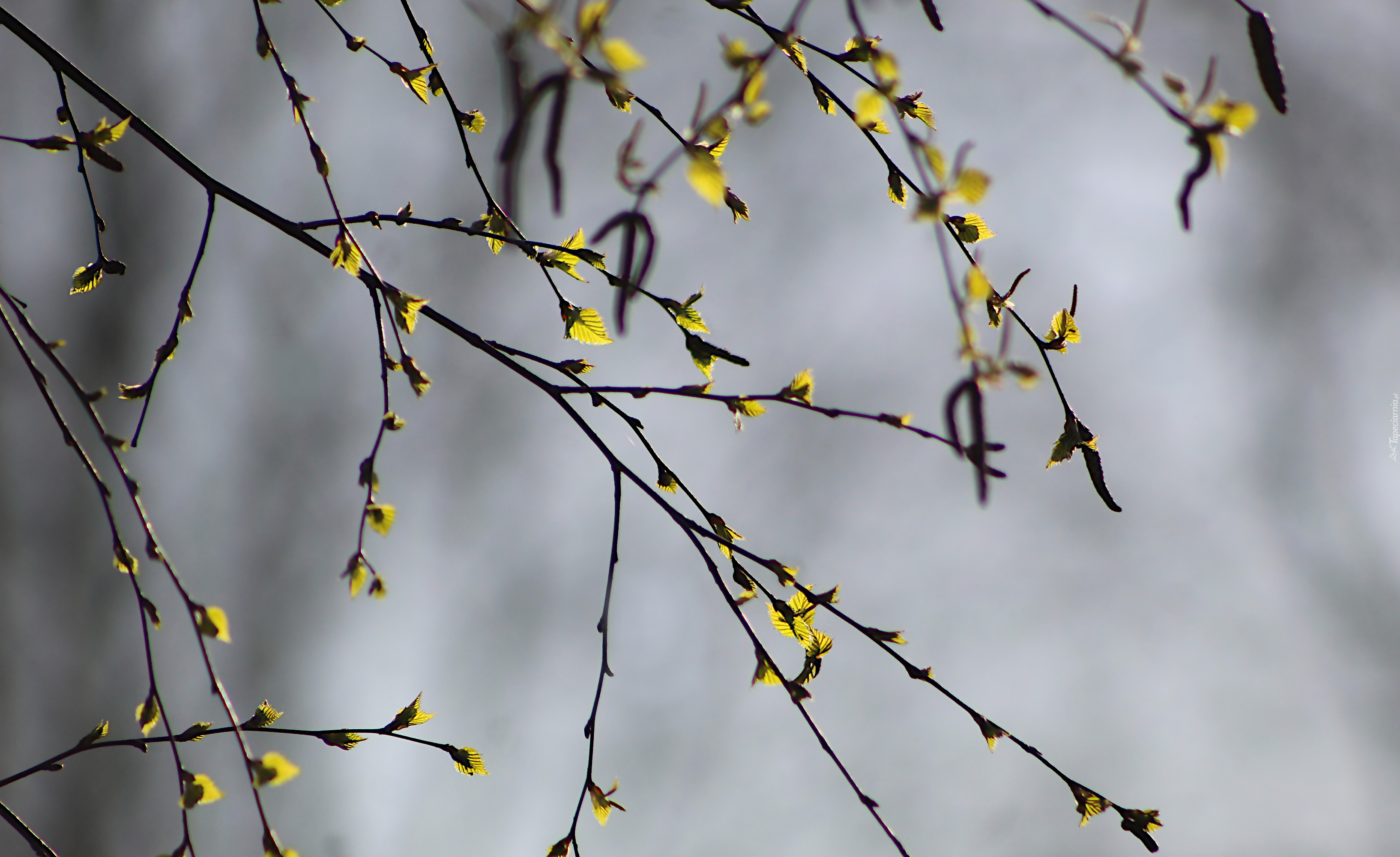 Edytor tapety: Młode listki na brzozowych gałązkach