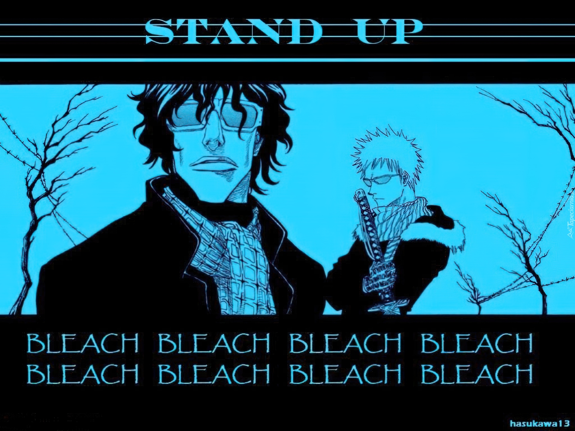 Edytor tapety: Bleach, stand up, postacie, miecz, napisy