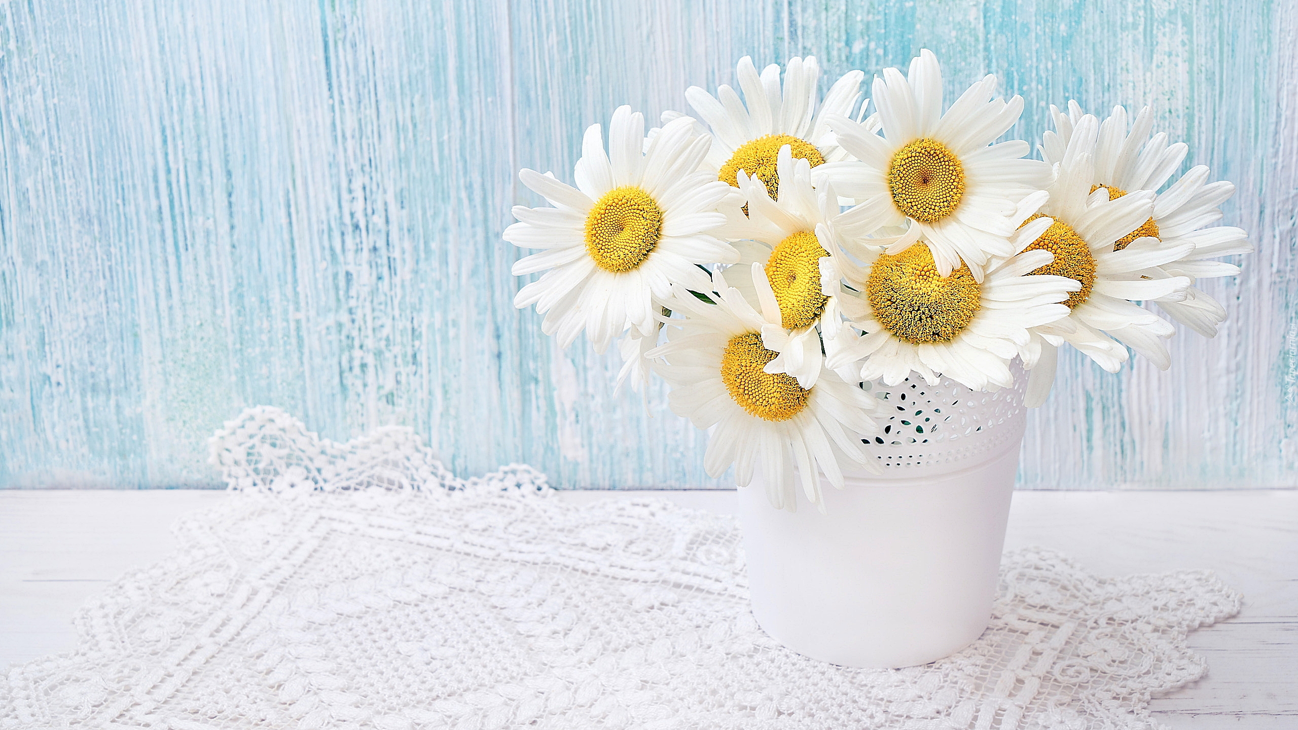 Edytor tapety: Margerytki w białej doniczce