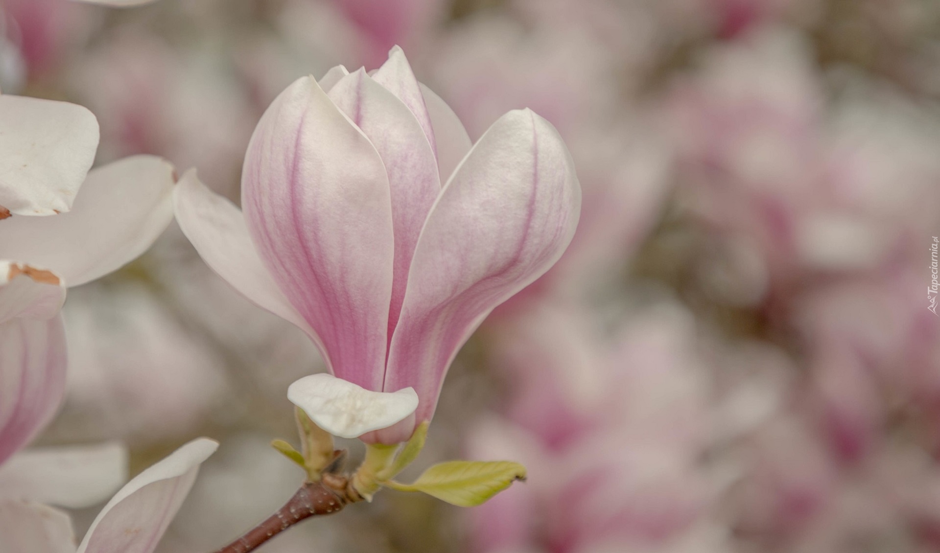 Edytor tapety: Rozkwitająca bladoróżowa magnolia