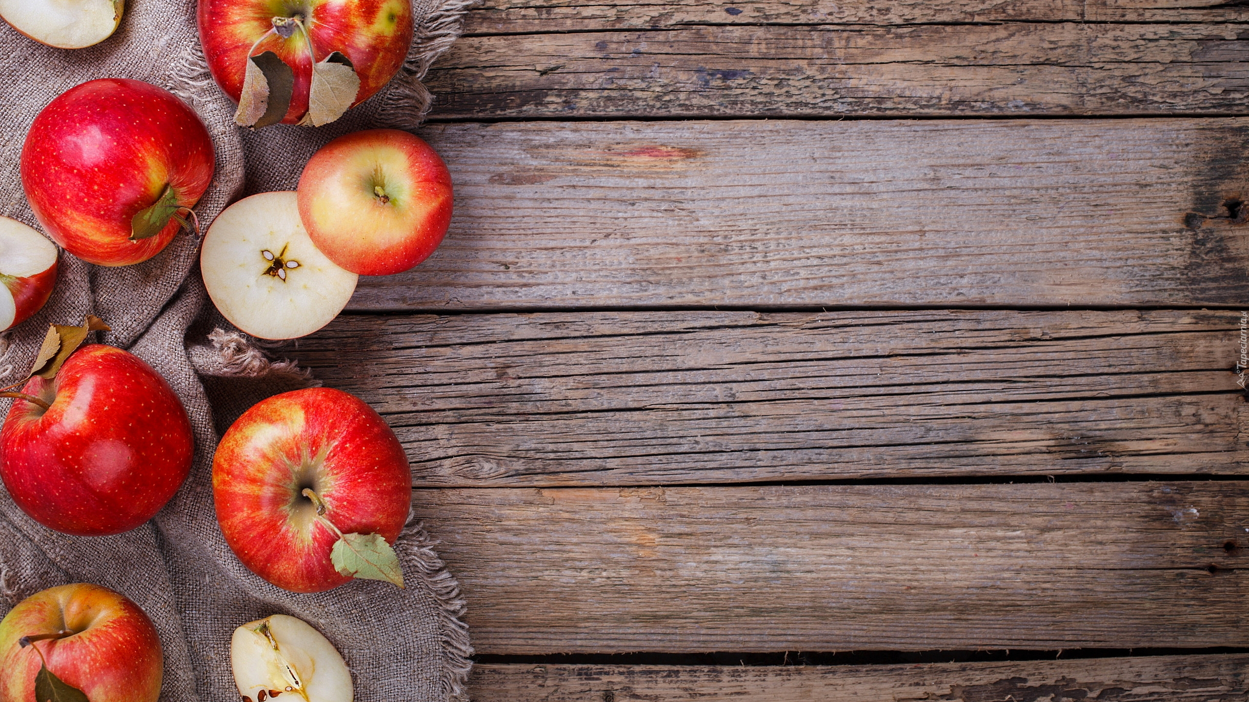 Edytor tapety: Jabłka w całości i kawałkach na materiale