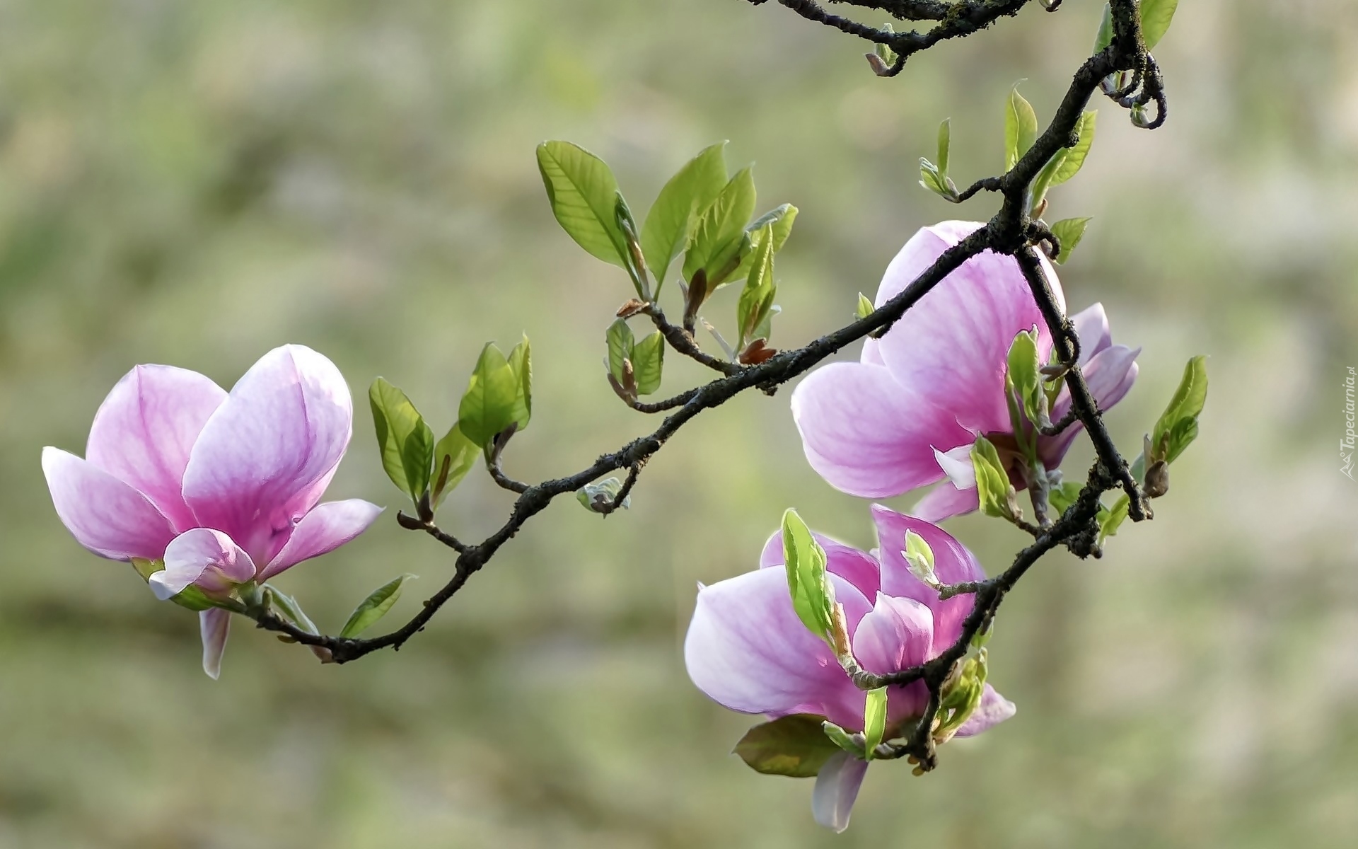 Edytor tapety: Trzy różowe magnolie na gałązkach