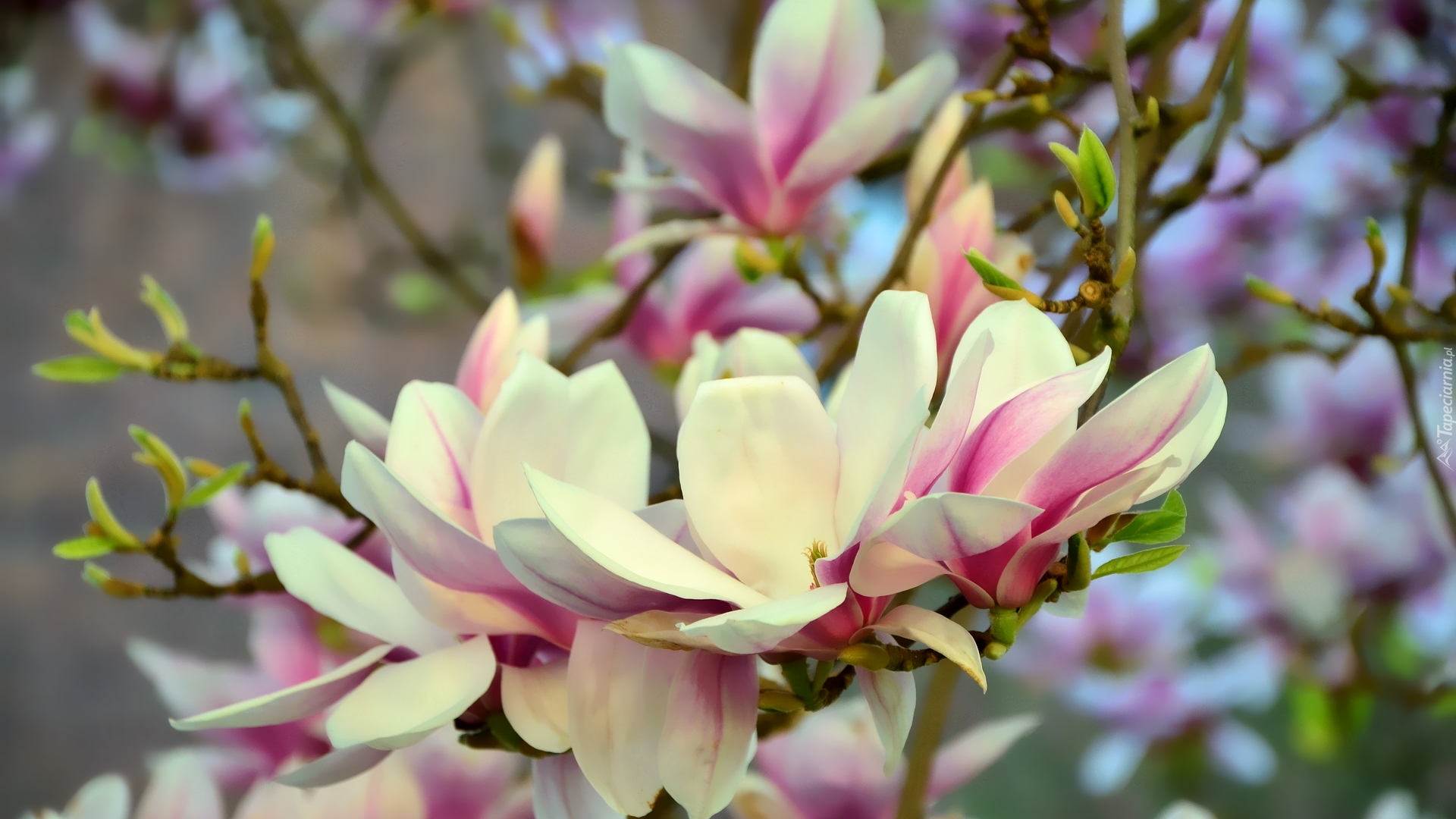 Edytor tapety: Rozkwitające kwiaty magnolii