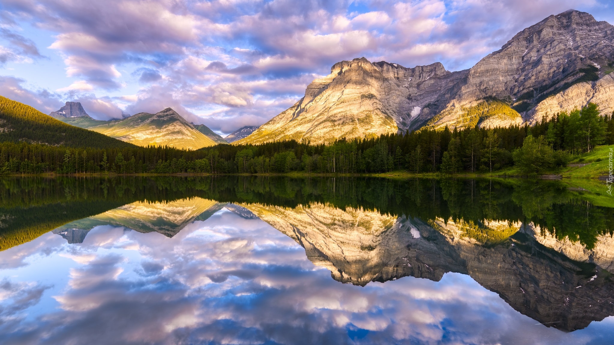 Edytor tapety: Odbicie w jeziorze górskich szczytów