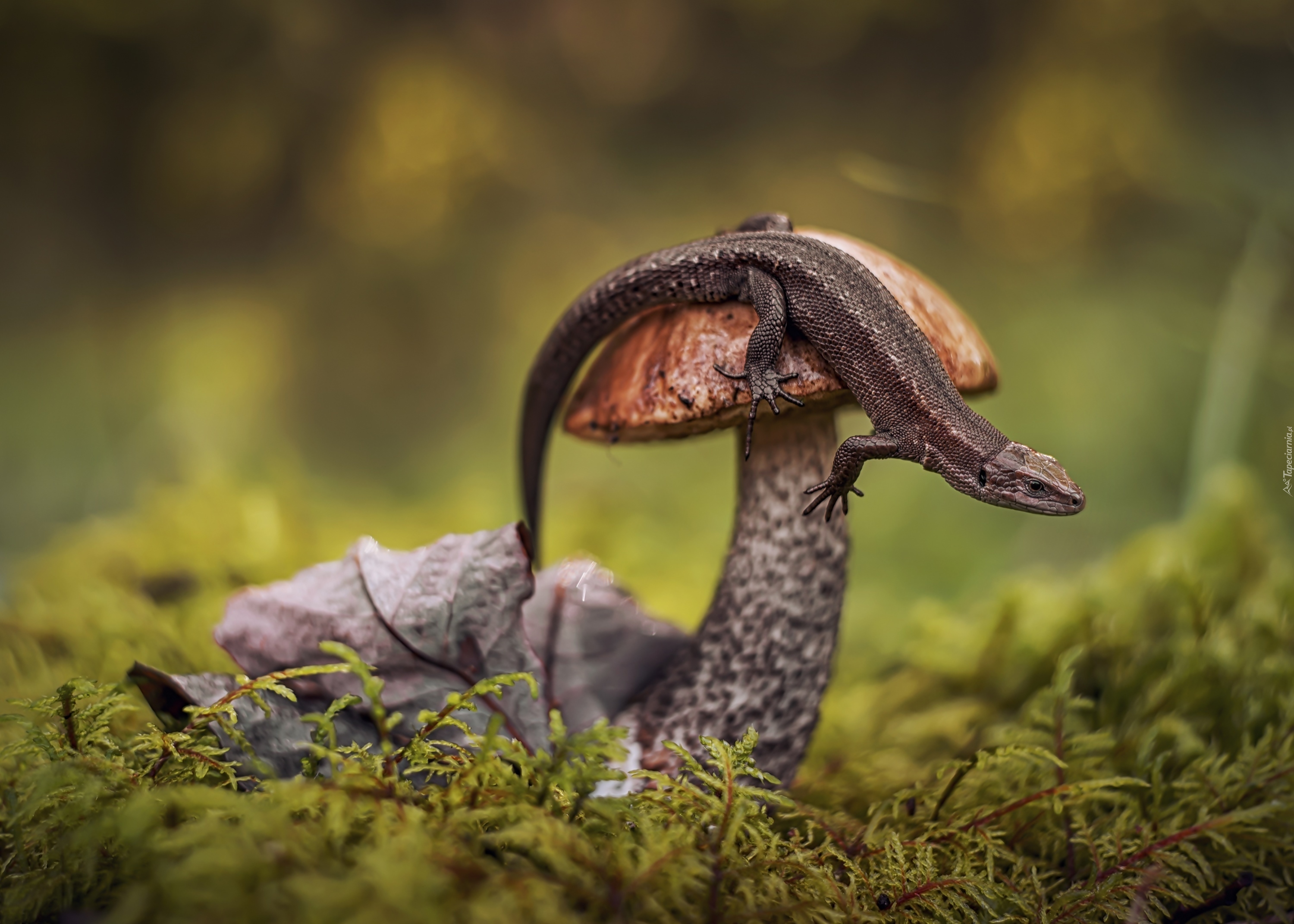 Edytor tapety: Jaszczurka na grzybie