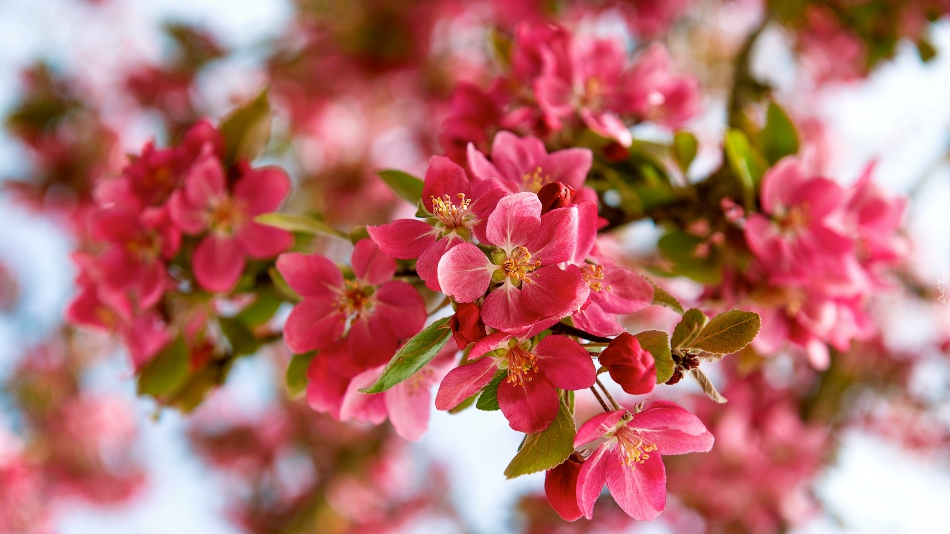 Edytor tapety: Czerwone kwiaty drzewa owocowego
