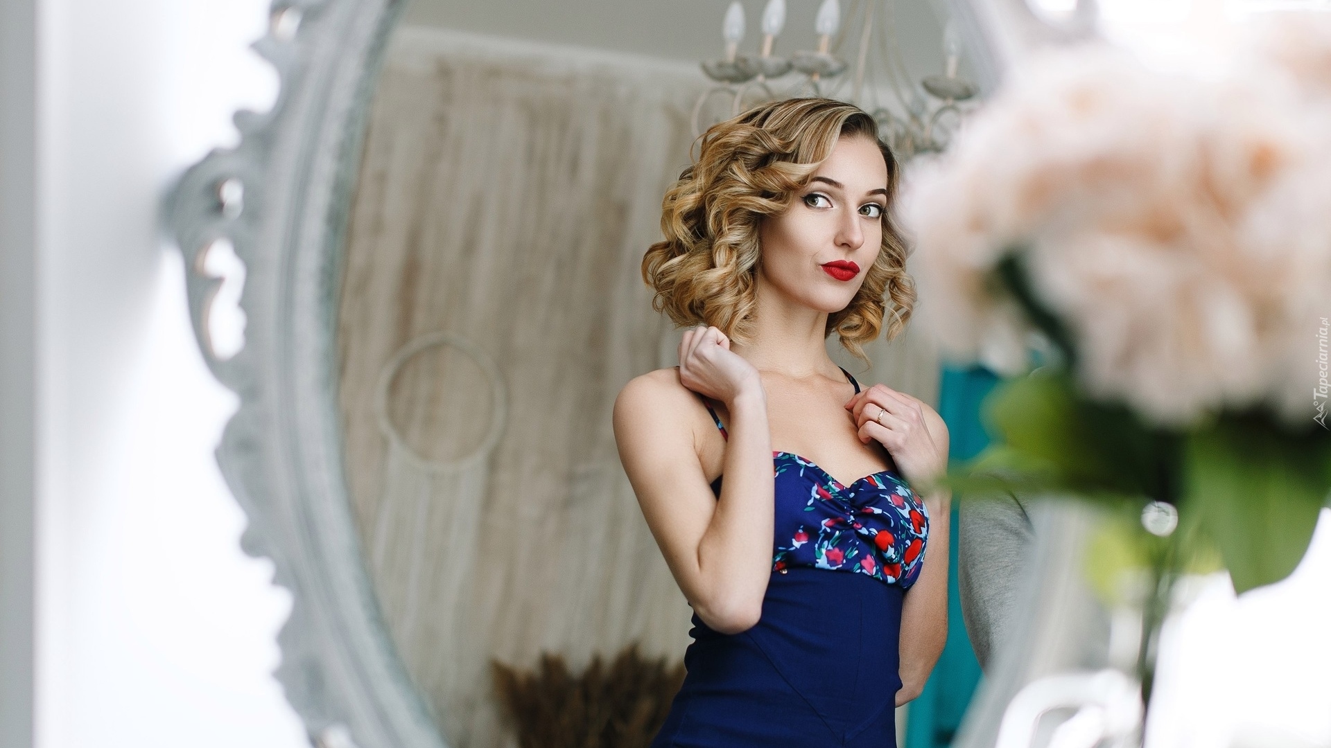 Edytor tapety: Blondynka w granatowej sukience