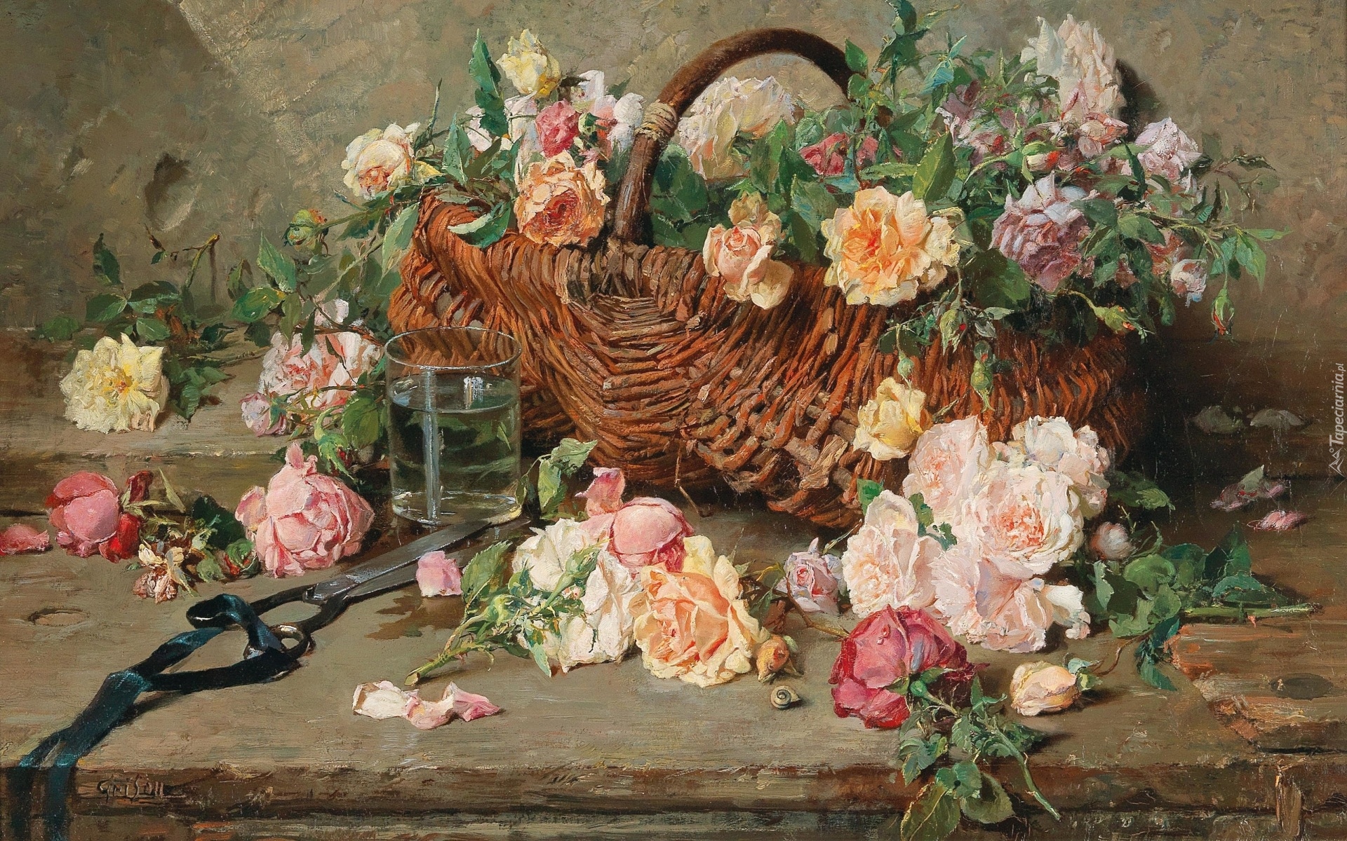 Edytor tapety: Róże w koszyku na obrazie Adolphe Grisona