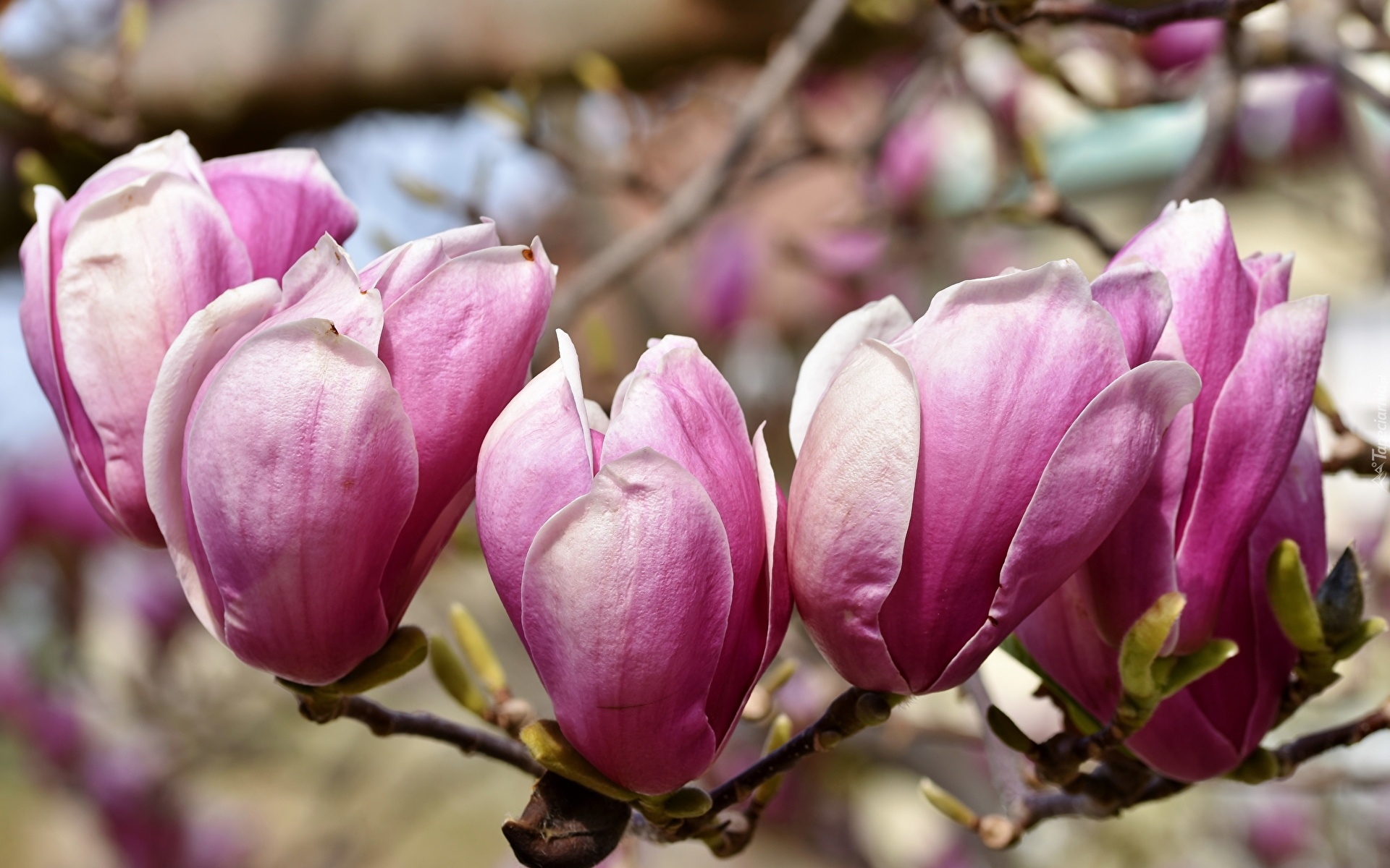 Edytor tapety: Rozkwitające magnolie w zbliżeniu