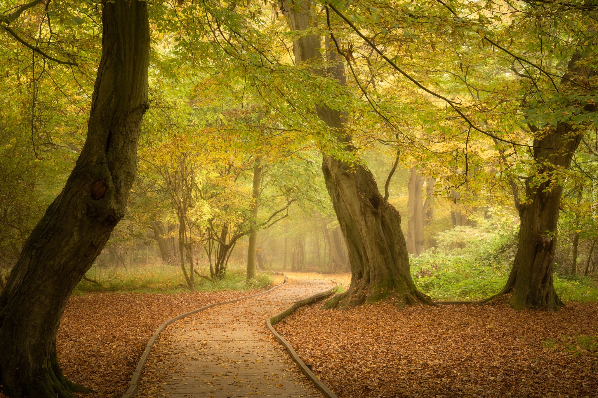 Edytor tapety: Droga w zamglonym parku