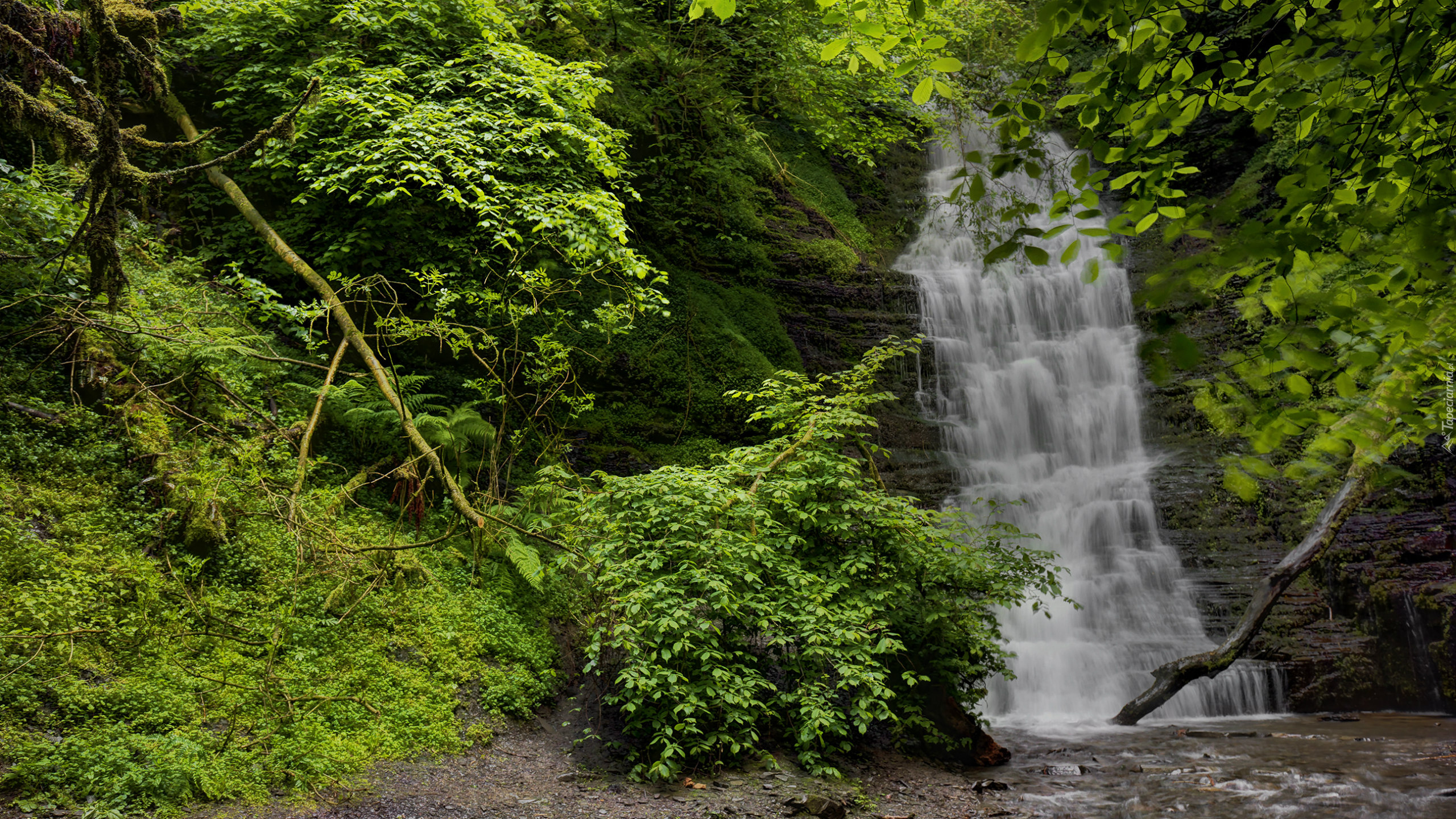 Edytor tapety: Zielone drzewa i krzewy przy wodospadzie