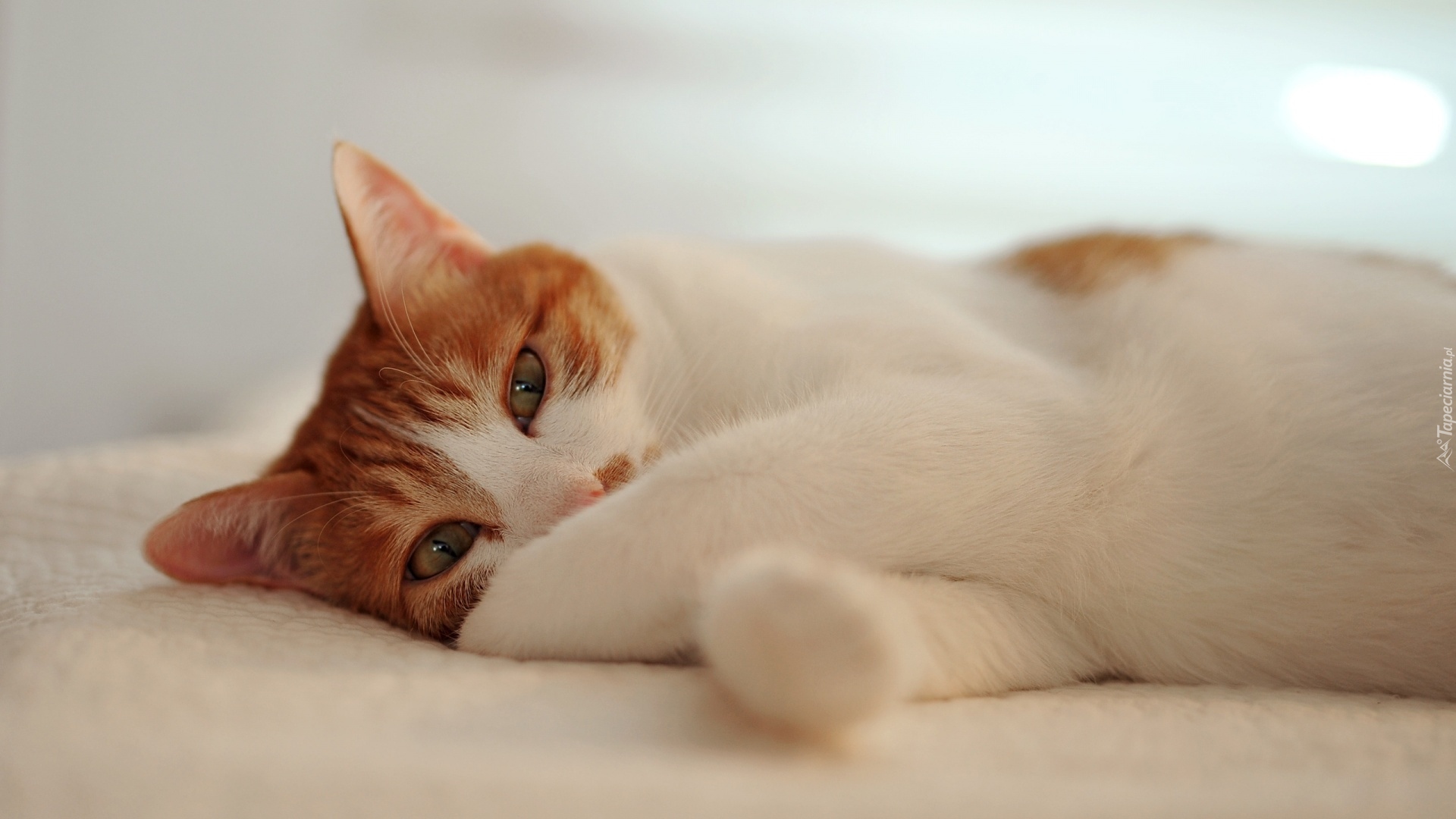 Edytor tapety: Leżący biało-rudy kotek