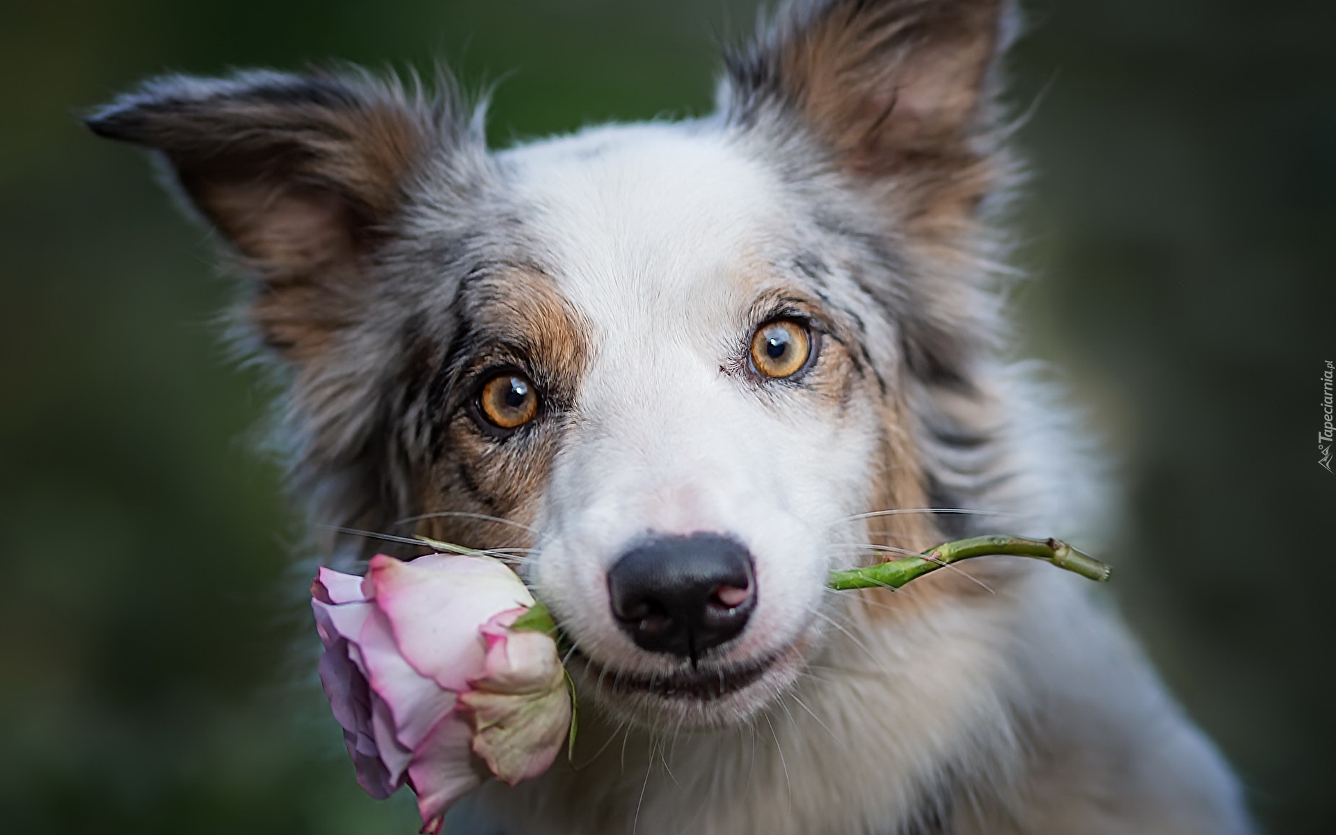 Edytor tapety: Border collie z różą w mordce