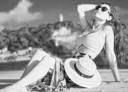 Edytor tapety: Długowłosa kobieta w okularach