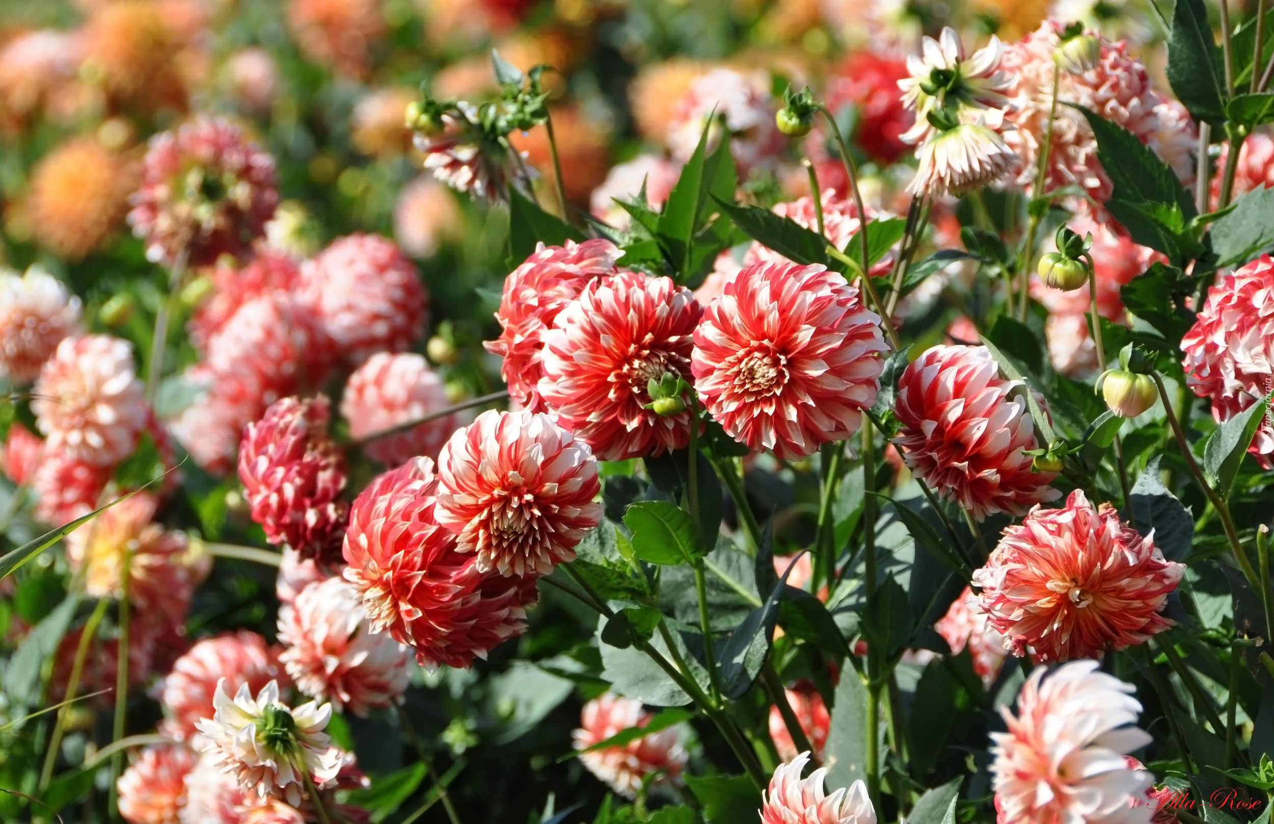 Edytor tapety: Czerwono-biała dalia z pąkami