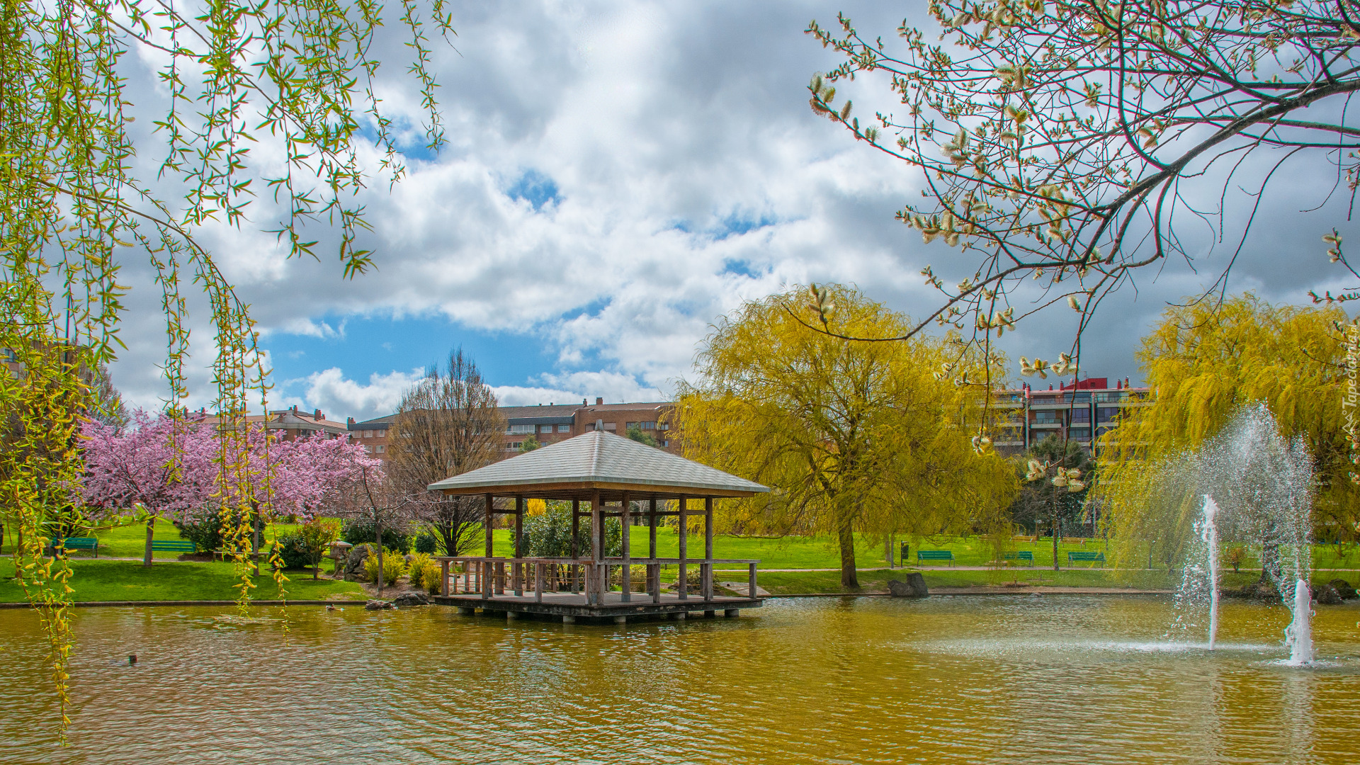 Edytor tapety: Altana nad stawem w parku Yamaguchi w Pampelunie