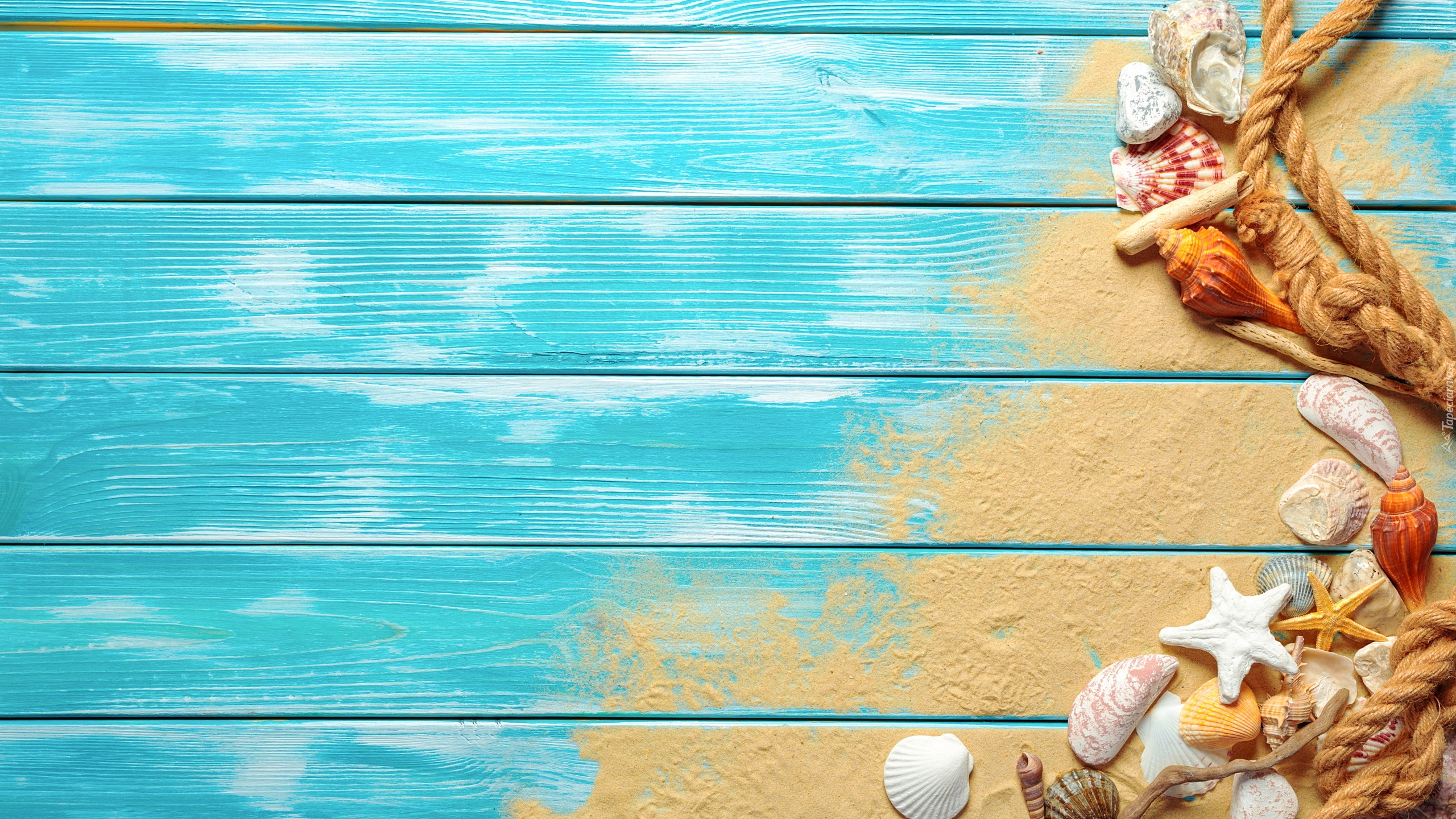 Edytor tapety: Lina i muszelki na deskach