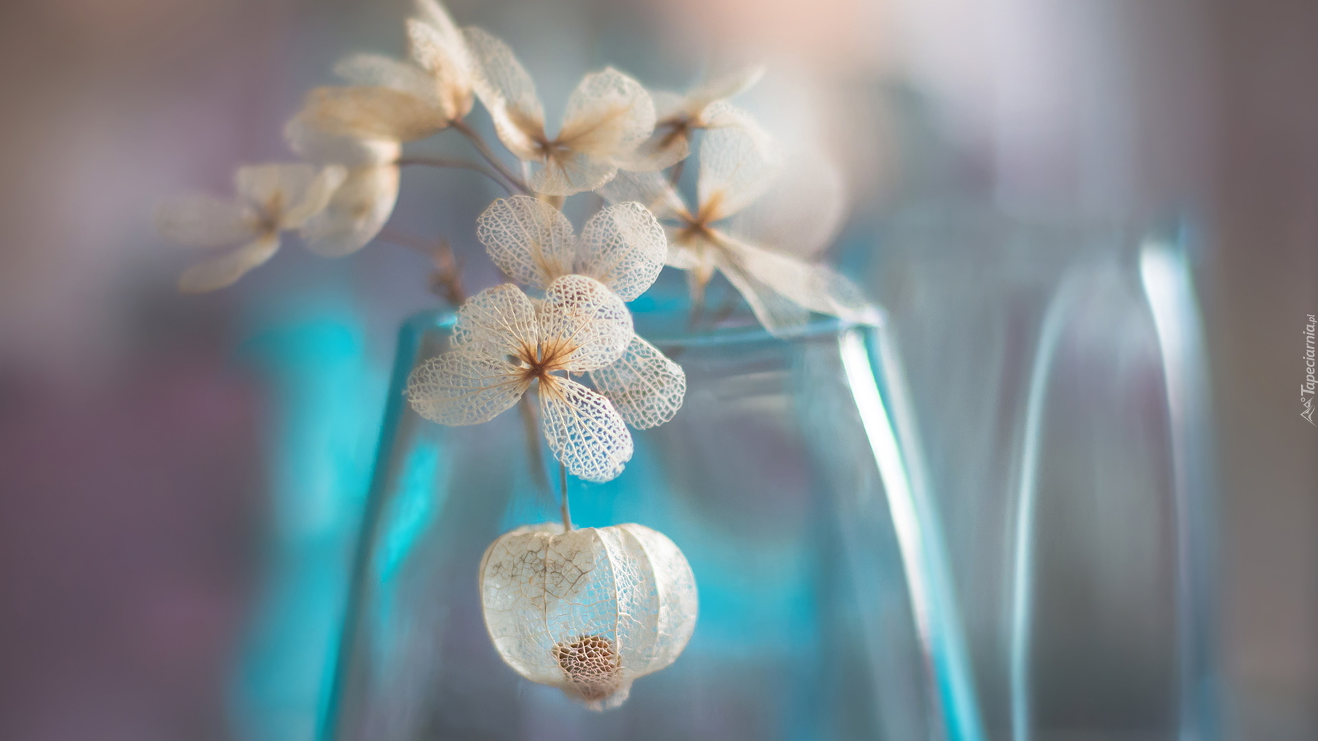 Edytor tapety: Hortensje i miechunka w niebieskim wazonie