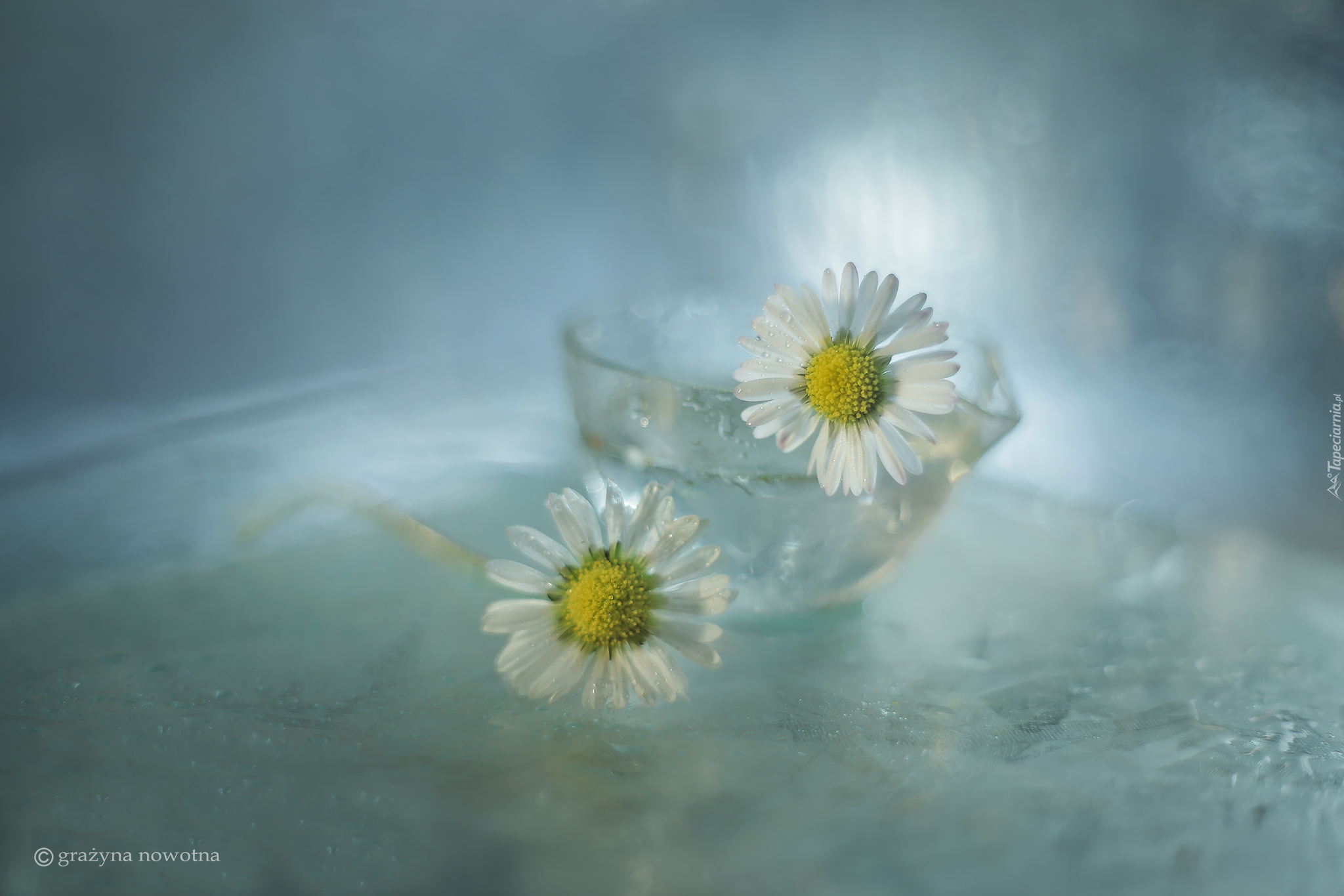 Edytor tapety: Dwie stokrotki w szklanym naczyniu