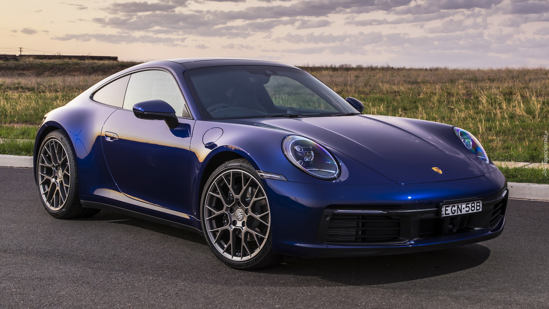 Edytor tapety: Granatowe Porsche 911 Carrera przodem