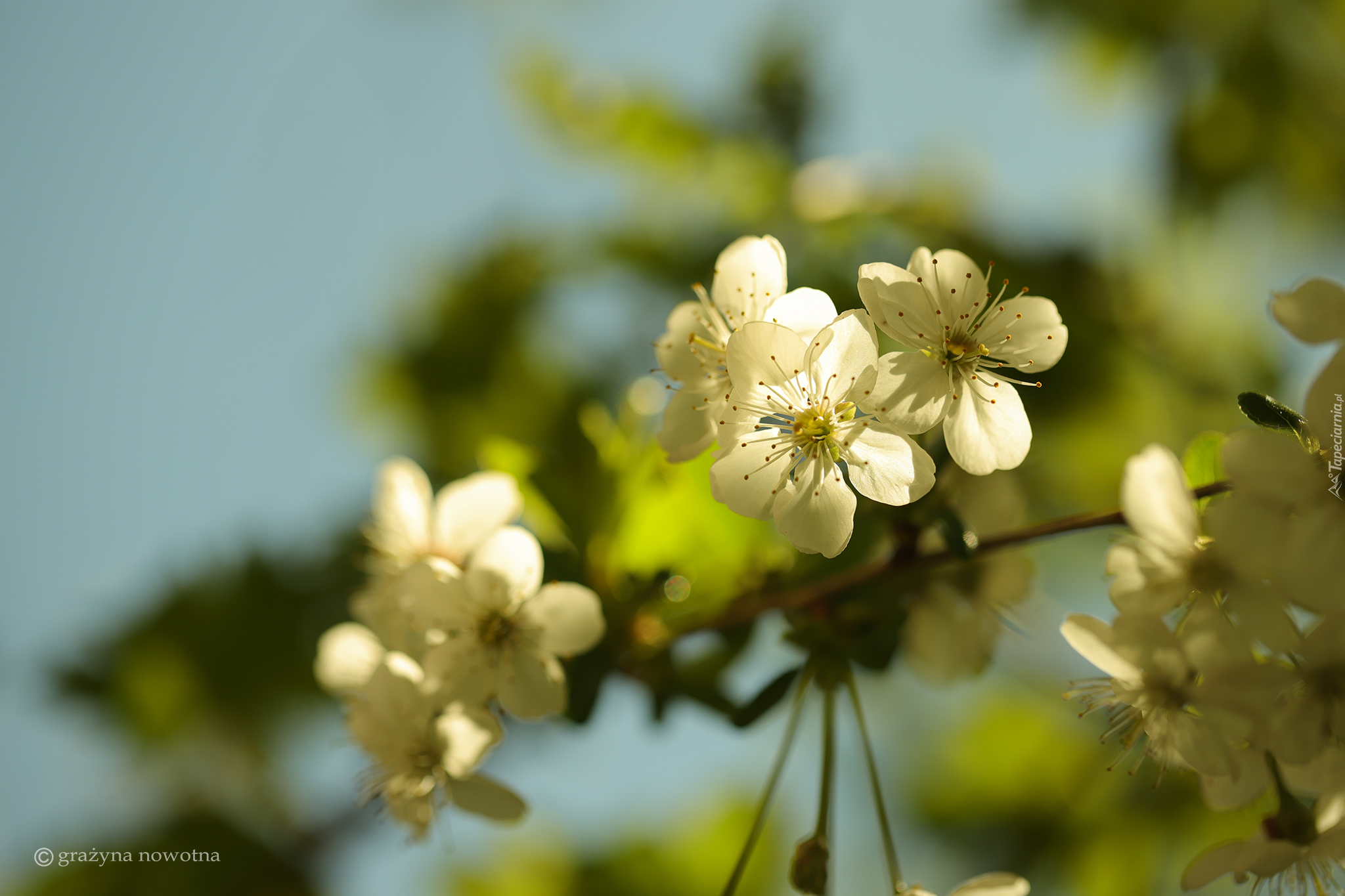 Edytor tapety: Białe kwiatuszki na gałązce