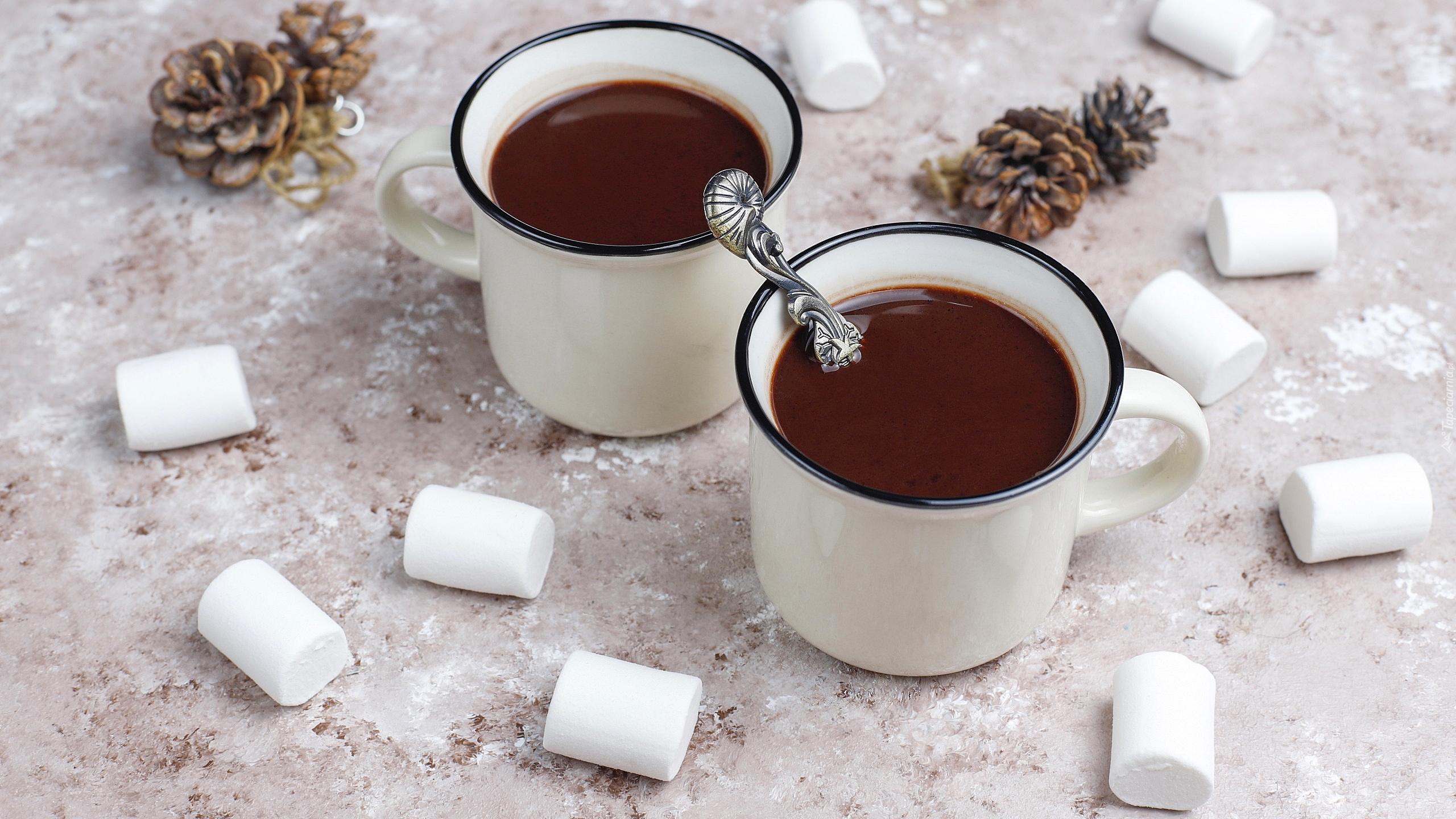 Edytor tapety: Pianki obok kubków z czekoladą