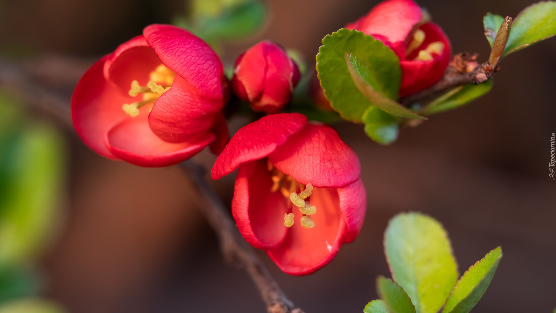 Edytor tapety: Czerwone kwiaty na gałązce
