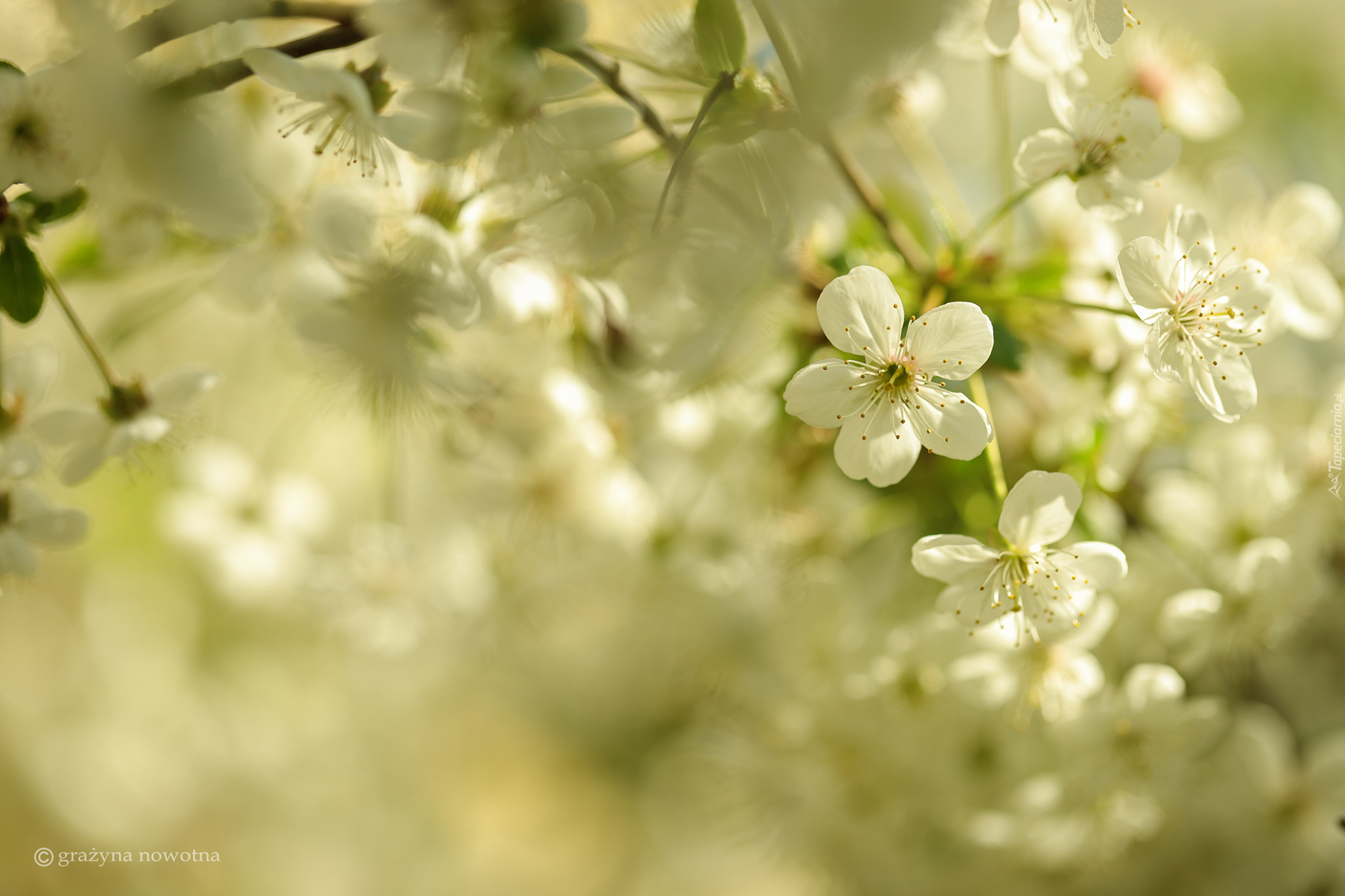 Edytor tapety: Białe kwiaty drzewa owocowego w zbliżeniu