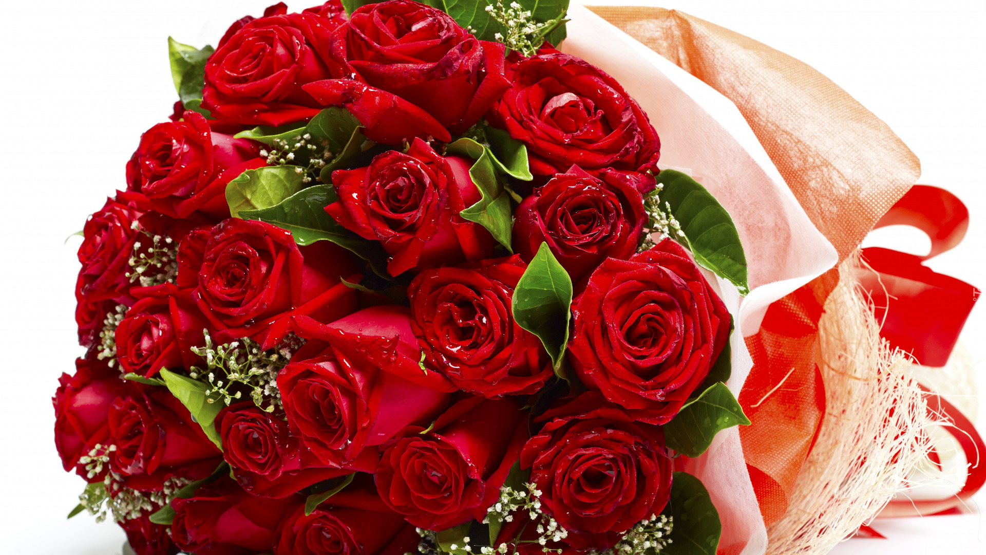 Edytor tapety: Bukiet czerwonych róż na jasnym tle