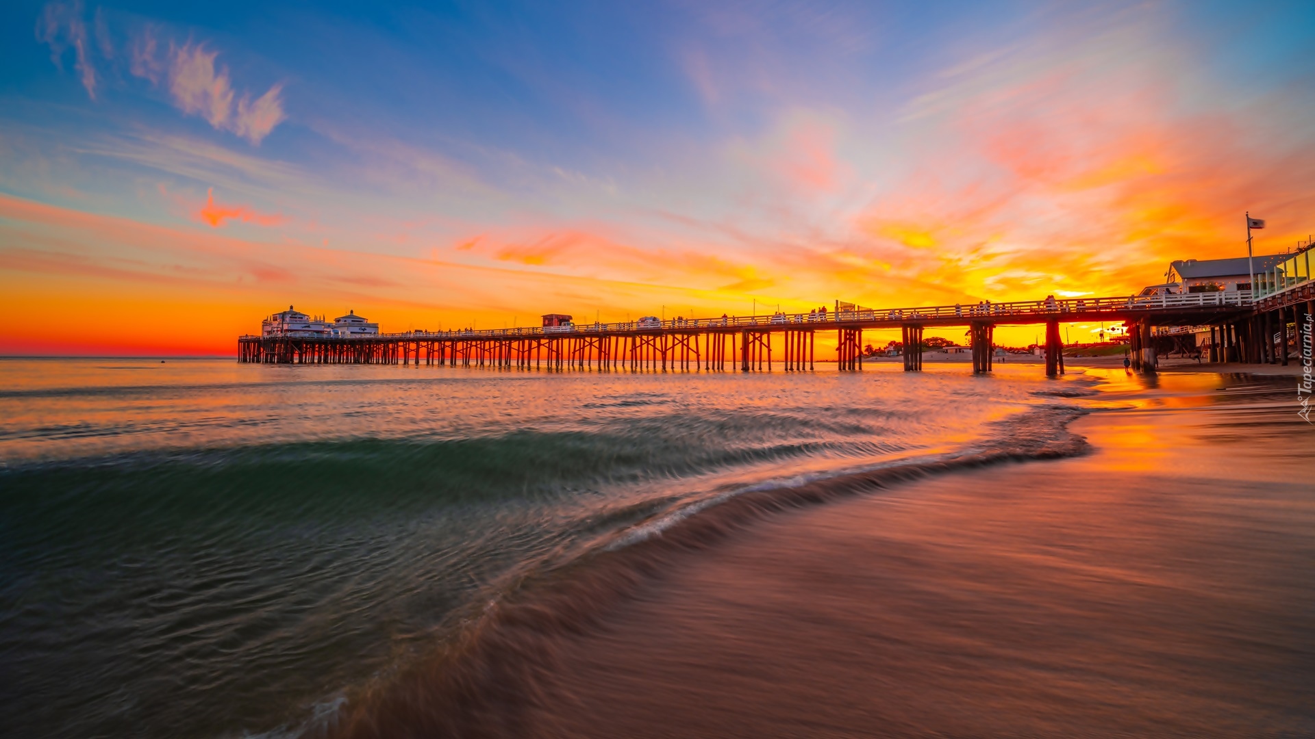 Edytor tapety: Molo i plaża w zachodzącym słońcu