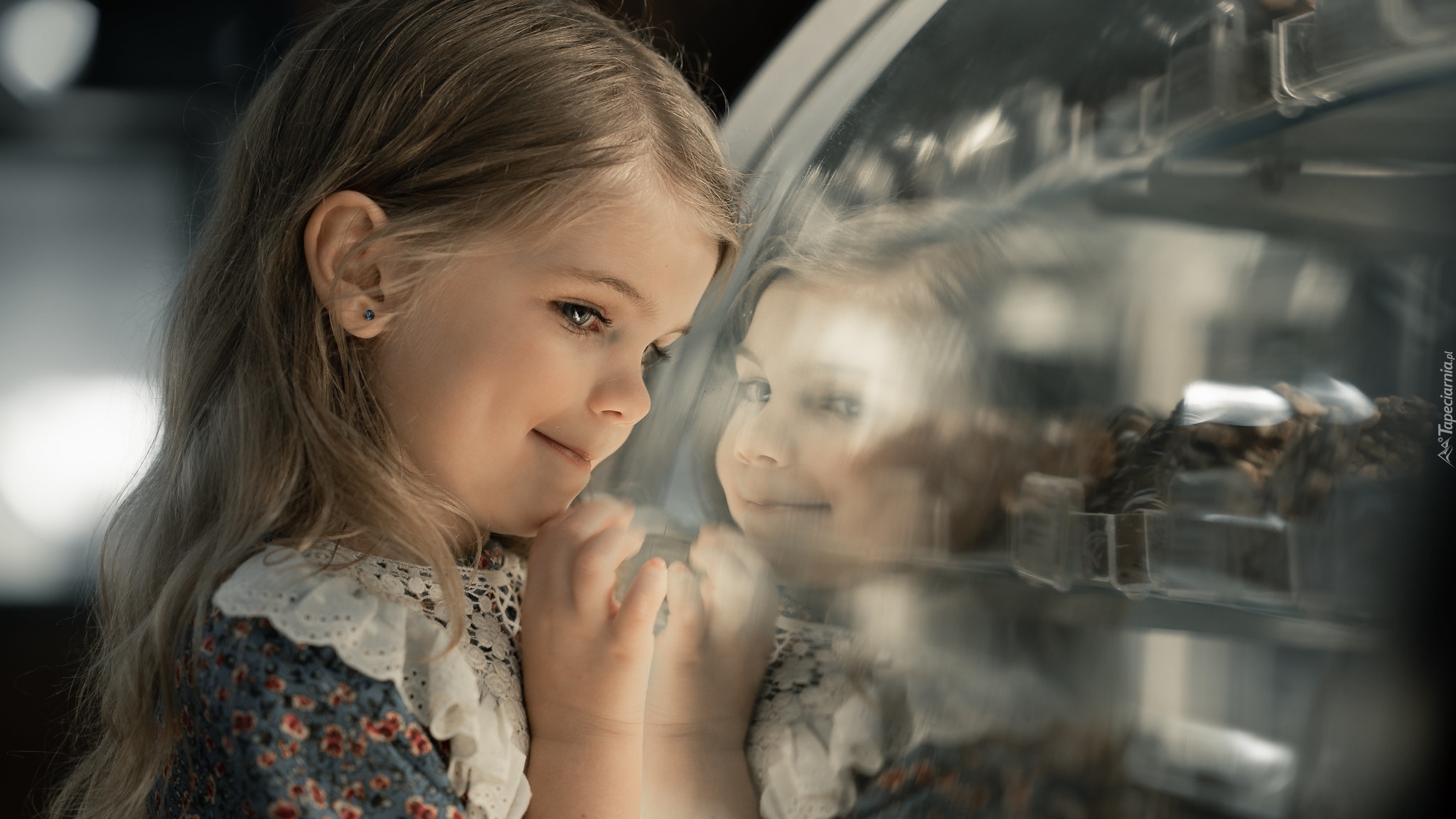 Edytor tapety: Uśmiechnięta dziewczynka przy szybie