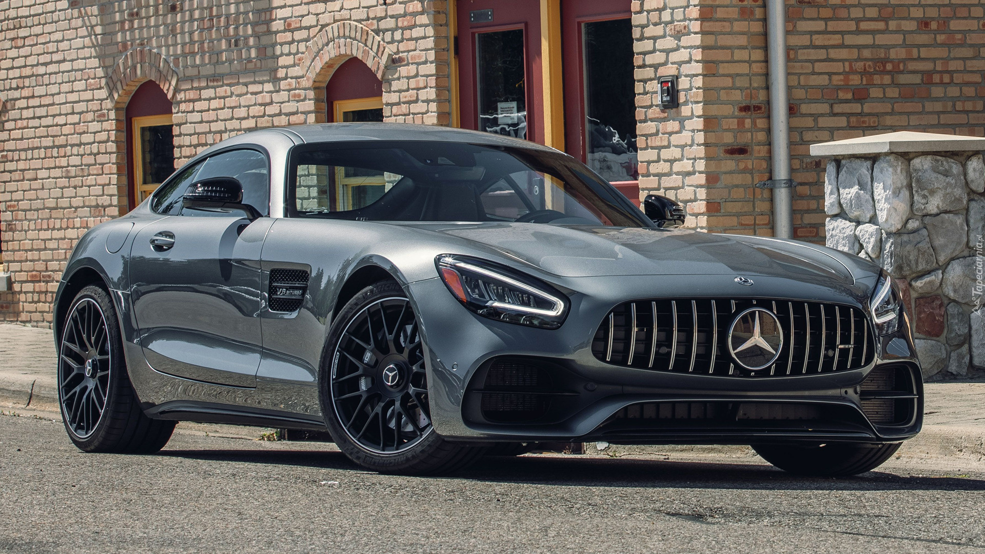 Edytor tapety: Mercedes AMG GT przed budynkiem