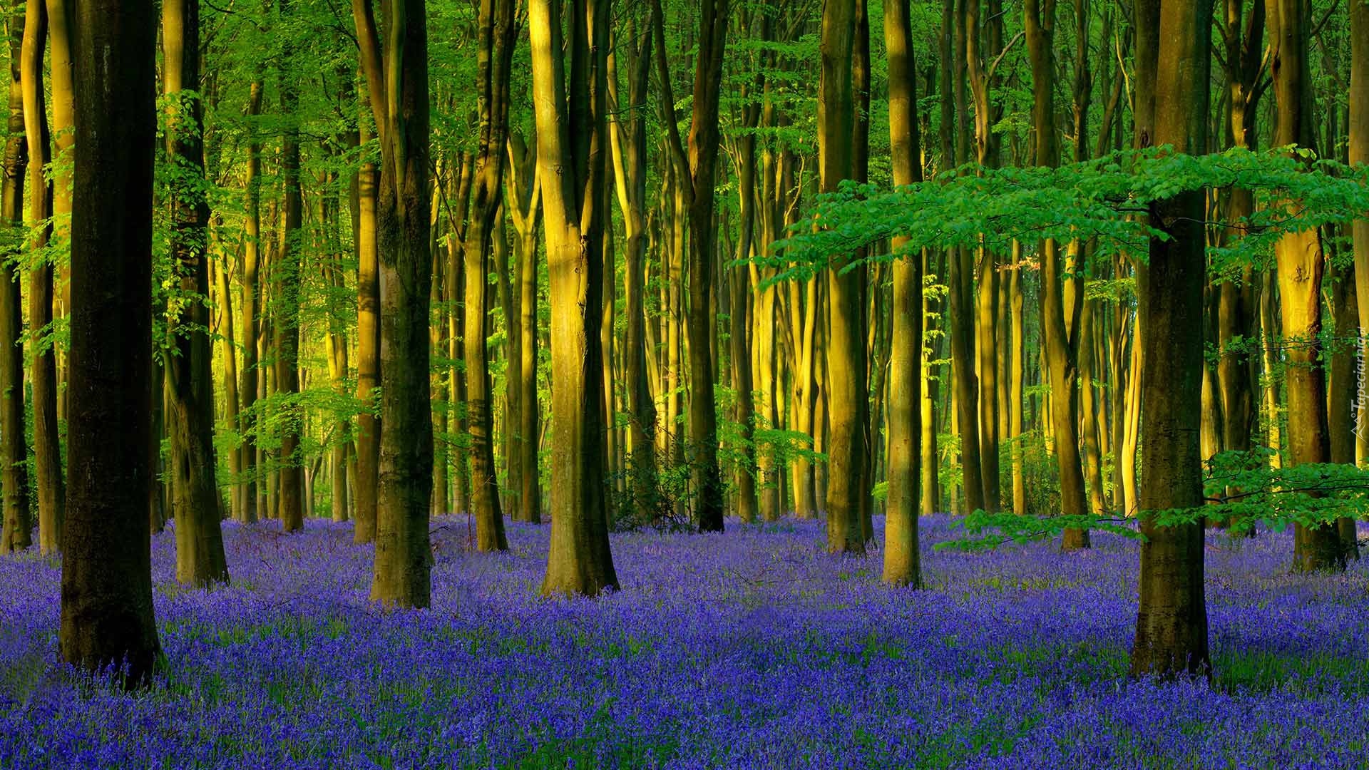 Edytor tapety: Hiacyntowce pod drzewami w miejscu Micheldever Wood