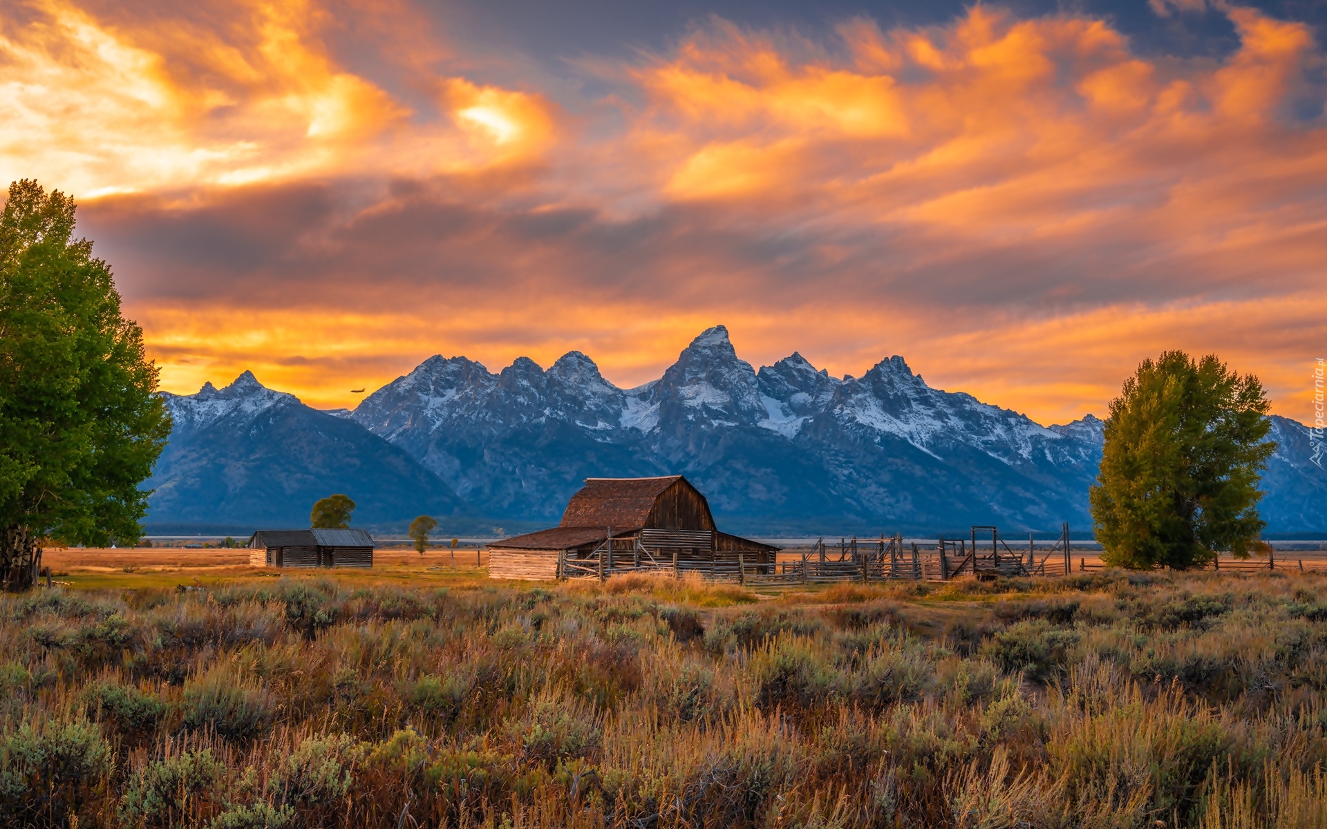 Edytor tapety: Drewniana chata na tle gór Teton Range