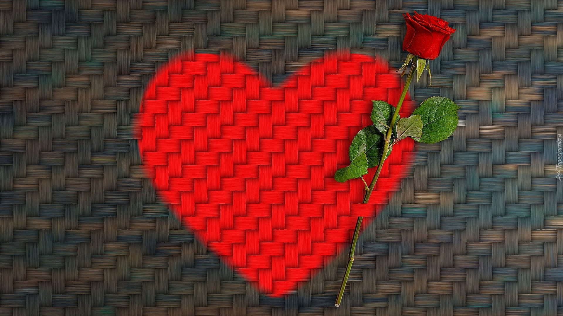 Edytor tapety: Róża na czerwonym sercu