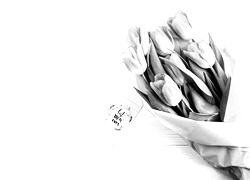 Edytor tapety: Bukiet tulipanów w papierze z zawieszką na Dzień Matki