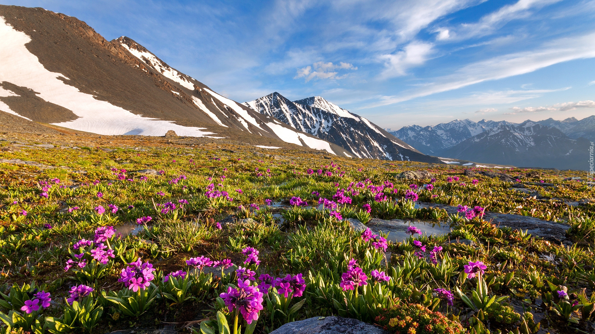 Edytor tapety: Wiosenne kwiaty na łące w Górach Katuńskich
