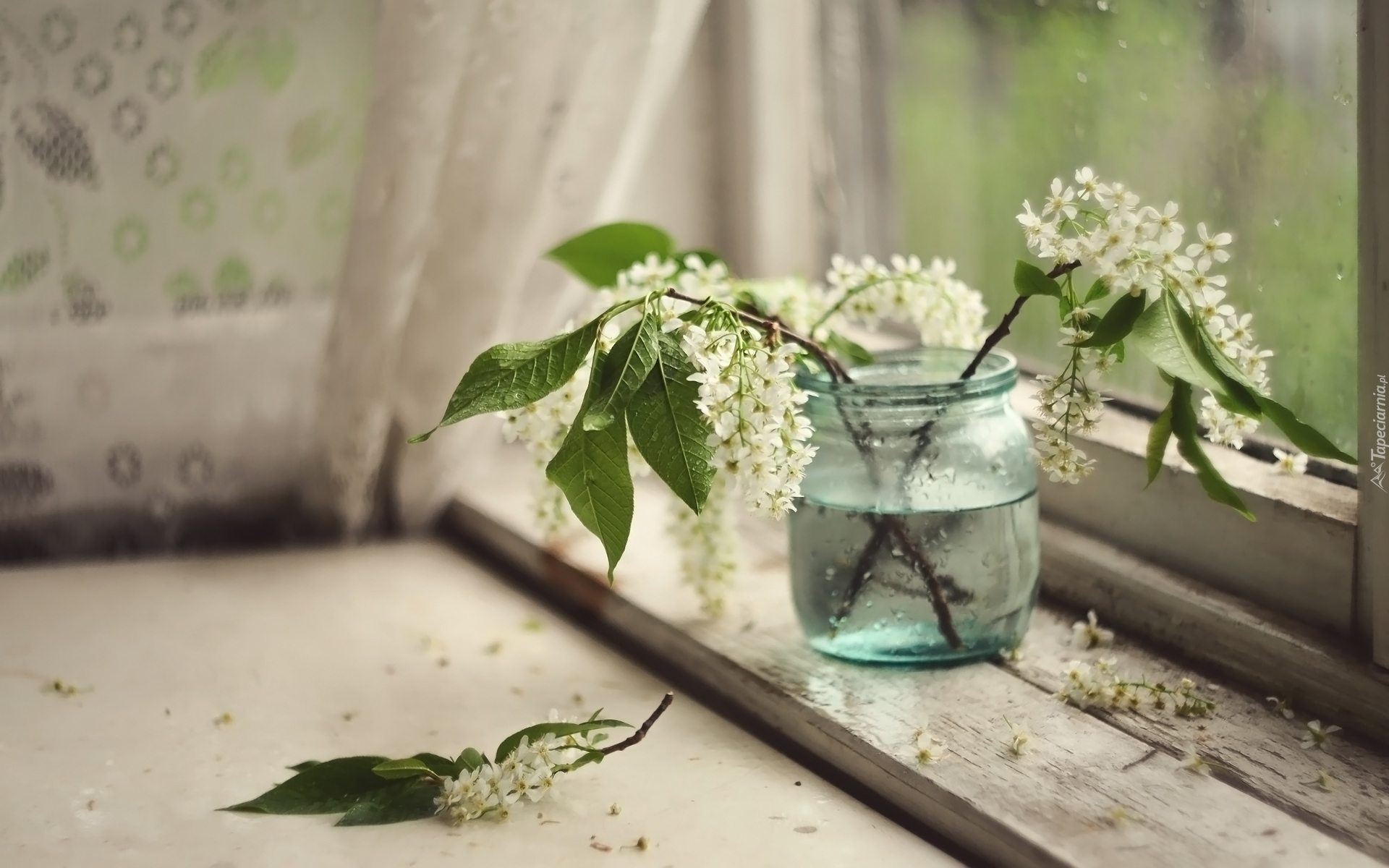 Edytor tapety: Czeremcha w słoiku przy oknie