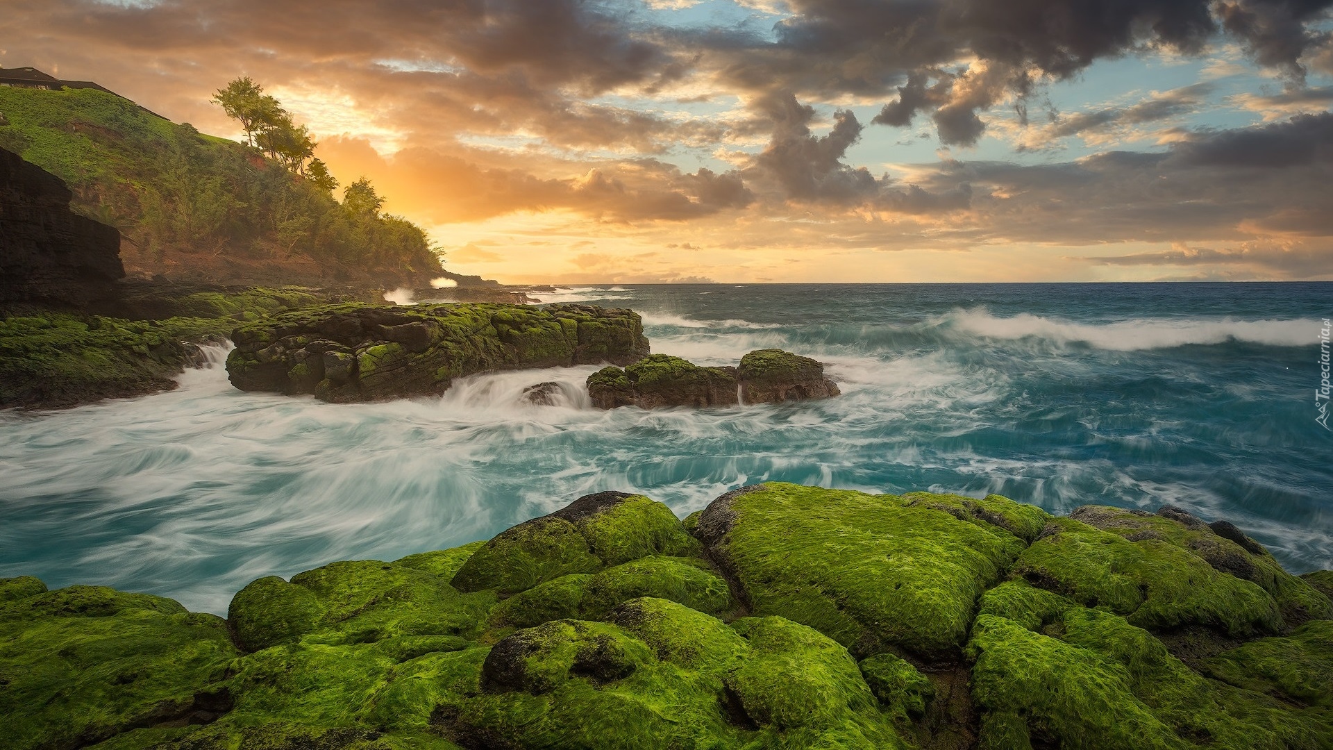Edytor tapety: Omszałe skały na morskim wybrzeżu